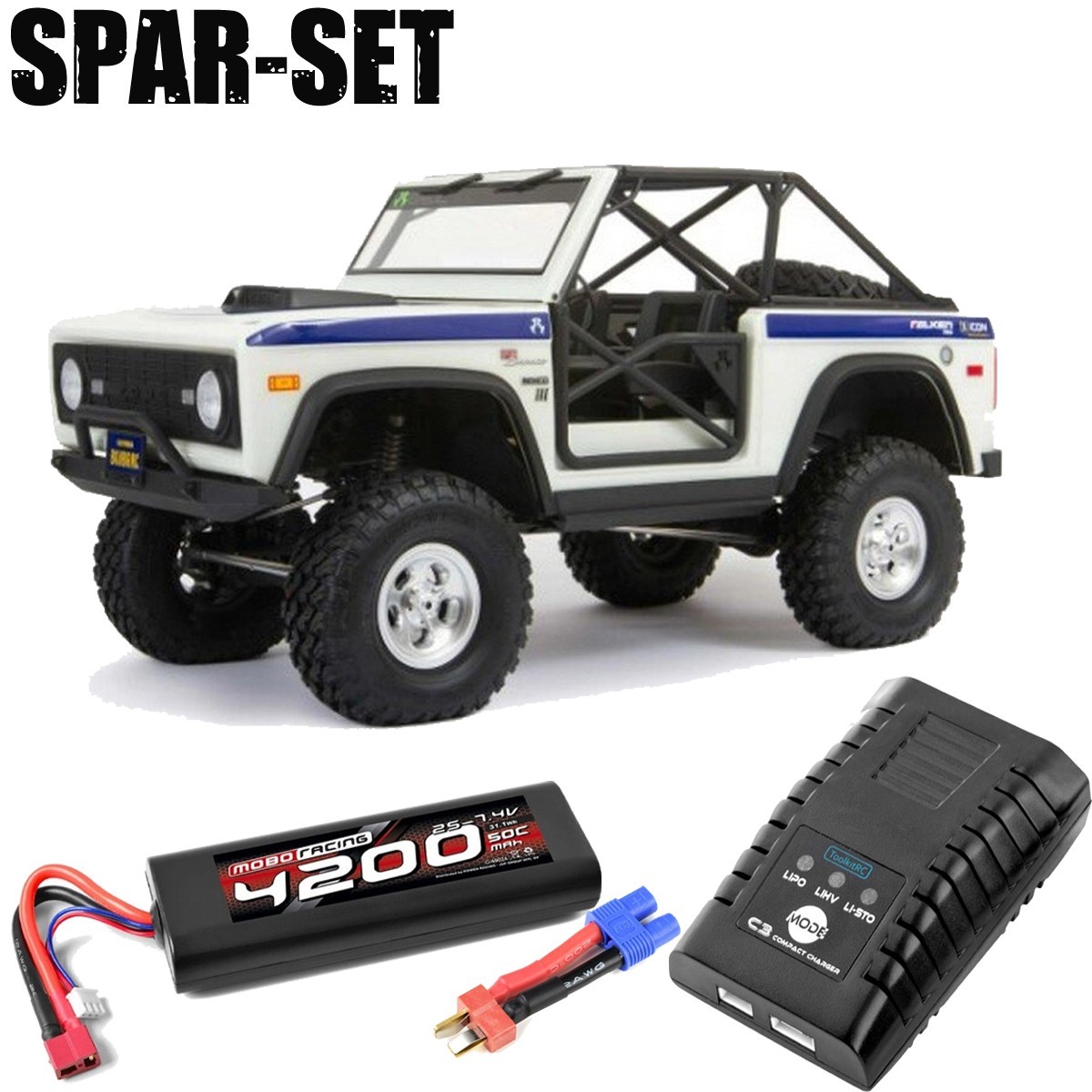 - Vordere und hintere Lichter mit funktionellem Bremslicht und Remote On/Off vom Sender