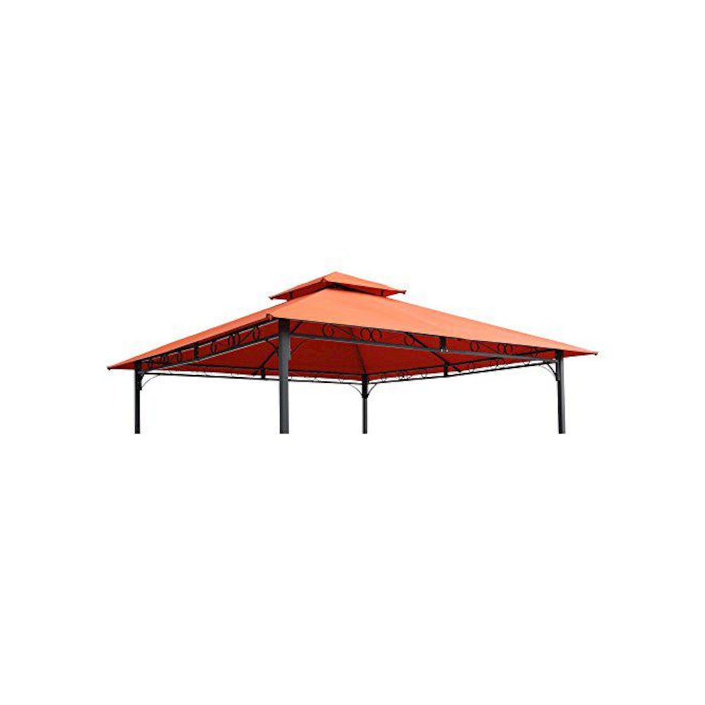 Replace an old or damaged canopy with this replacement canopy. This canopy is designed to use with a 10-foot vented canopy gazebo.The canopy is made from durable polyester that is weather and UV-resistant. Top tier dimensions are 2'7 wide x 2'7 deep and overall dimensions are 9'10 wide x 9'10 deep. Corners have slip pockets for frame to fit into.