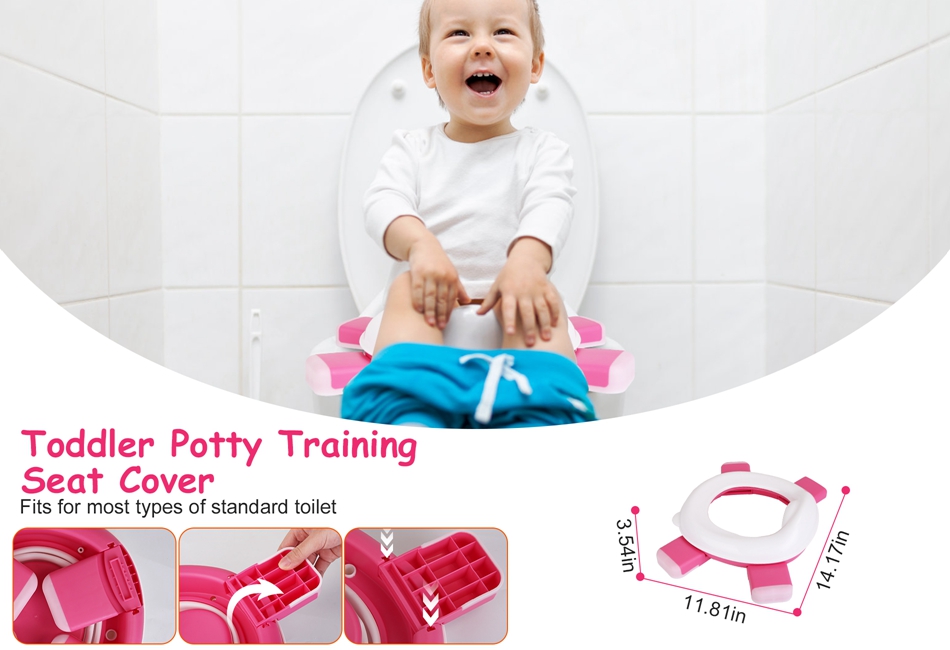 - Easy To Use & Clean:Without any tools,screws required,you can easily fold or unfold this portable toddler potty toilet in 30 sceonds. Heat-resistant material can withstand temperature from -4°F to 248°F,allow you to easily rinse it by water.