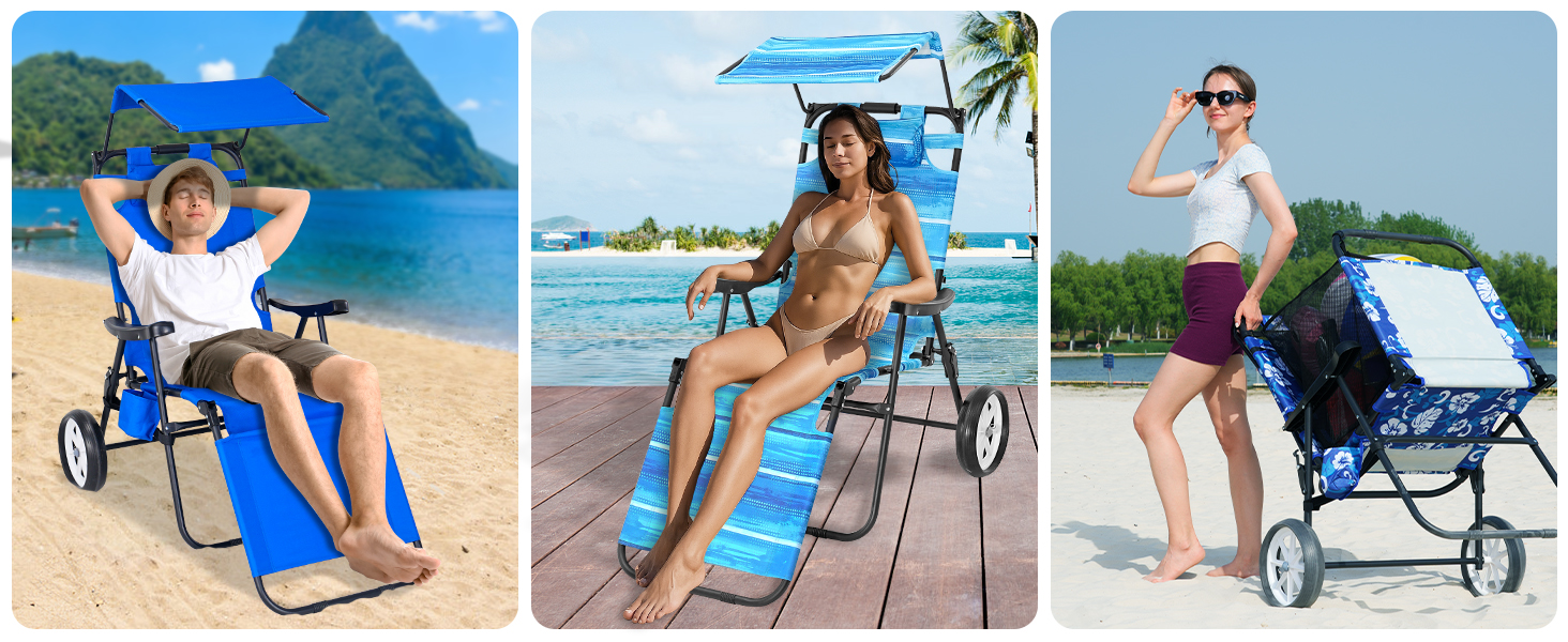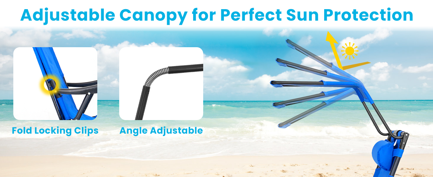 PREMIUM MATERIALS - Crafted from high-quality, UV-resistant Oxford fabric and supported by a sturdy steel frame.The adjustable canopy and removable headrest pillow provide extra comfort and protection from the sun, enhancing your outdoor experience