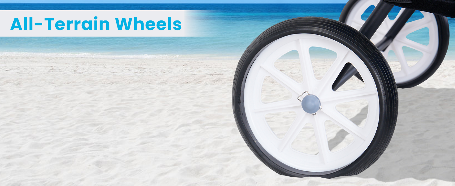 CONVENIENT ALL-TERRAIN MOBILITY - Equipped with large all-terrain wheels, our beach chair combo effortlessly navigates through sand and grass. Folded dimensions of 36" in width and 30" in height make it easy to store and transport. Open dimensions of 43.3" x 20" x 49.6" provide ample space for lounging