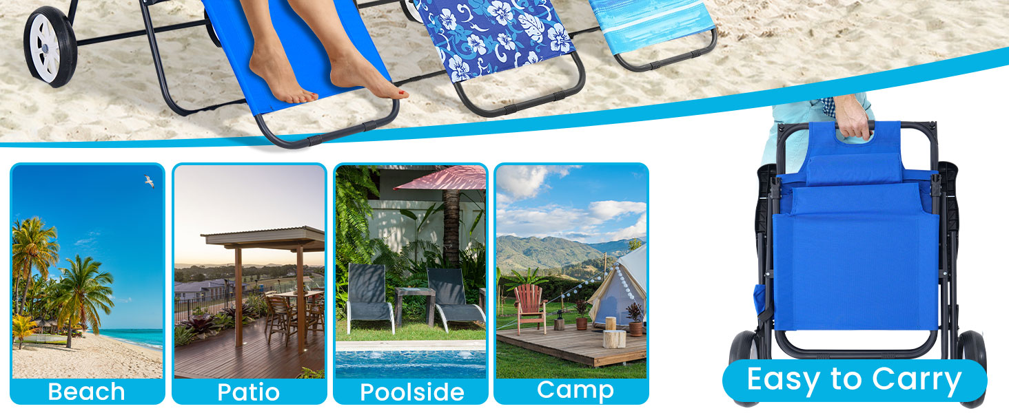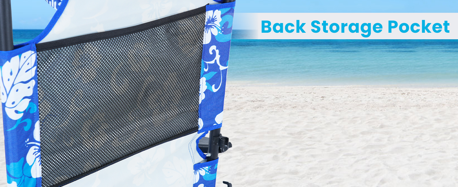 SPACIOUS STORAGE - Featuring an extra-large mesh basket, our chaise lounge outdoor securely fastens and locks all your beach essentials. Attach the mesh for hauling items, and effortlessly convert it back to a comfortable beach chair when it's time to relax