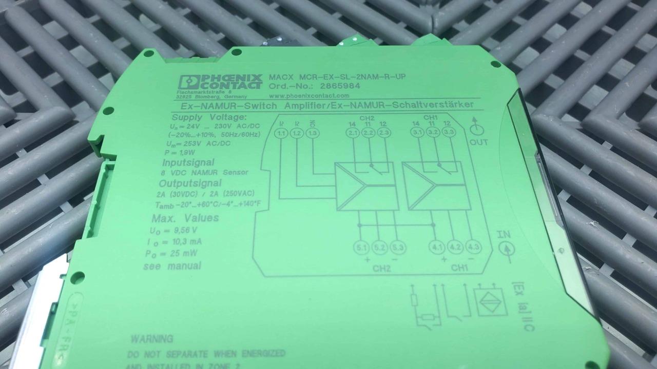 Here is a Phoenix Contact 2865984 Signal Conditioner MACX MCR-EX-SL-2NAM-R-UP Voltage Isolation Amplifier. In like-new condition, pulled from working equipment. External markings may be present.