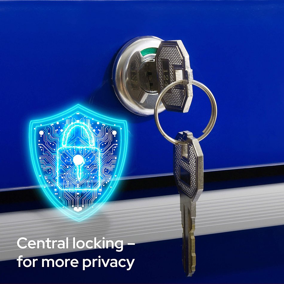 El carro de taller dispone de un sistema de cierre centralizado con el que podrá asegurar todos los cajones al mismo tiempo contra la apertura accidental y transportarlos sin problemas. Al bloquear los cajones, las herramientas que se encuentran en su interior se guardan de forma segura y se impide el acceso directo y no autorizado.