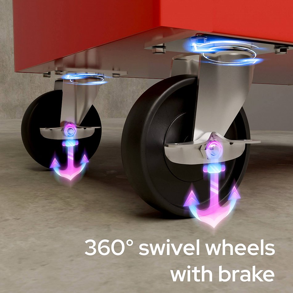 Los cajones con rodamientos de bolas permiten una apertura y cierre suave de los cajones. Además de eso, los grandes cajones con tapetes antideslizantes ofrecen espacio suficiente para todo su equipo y mantienen todas las herramientas en su lugar correcto.