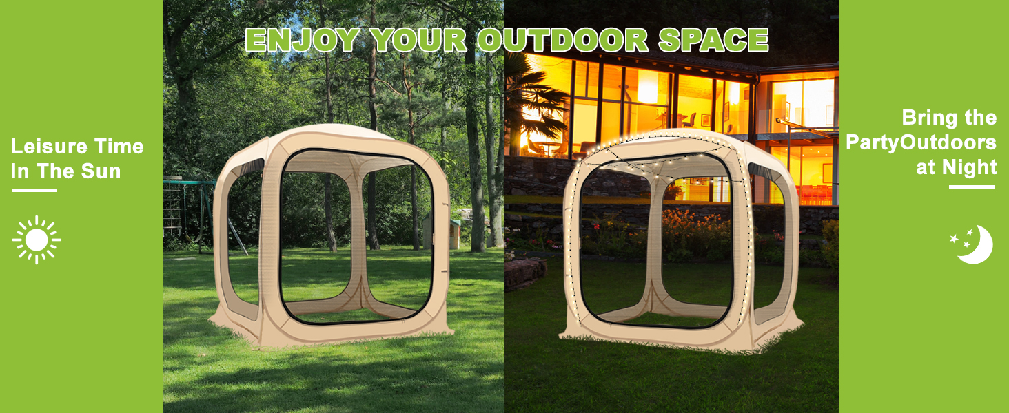 ENJOY YOUR OUTDOOR LIFE: Creating a more comfortable and mosquito-free outdoor space is easy with our screen house. Now, you can use this screen house to hold intimate parties, BBQ dinners, and pool dates for close friends. Decorate the gazebo canopy tent with lights and other cute decorations, creating a stunning environment for your garden date.