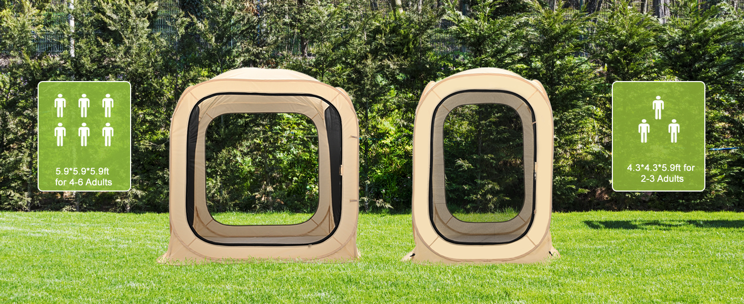 SPACIOUS SCREENHOUSE: The portable pop-up screen tent features a 4-sided fine mesh design for 360° perfect ventilation and can protect you from mosquitoes or other bugs. This screen tent measures 51"x51"x71", which is enough to accommodate 2-3 adults. measures 71"x71"x71",which is enough to accommodate 4-6adults. Ideal for creating a comfortable and protected resting space during various outdoor activities such as picnics and camping.
