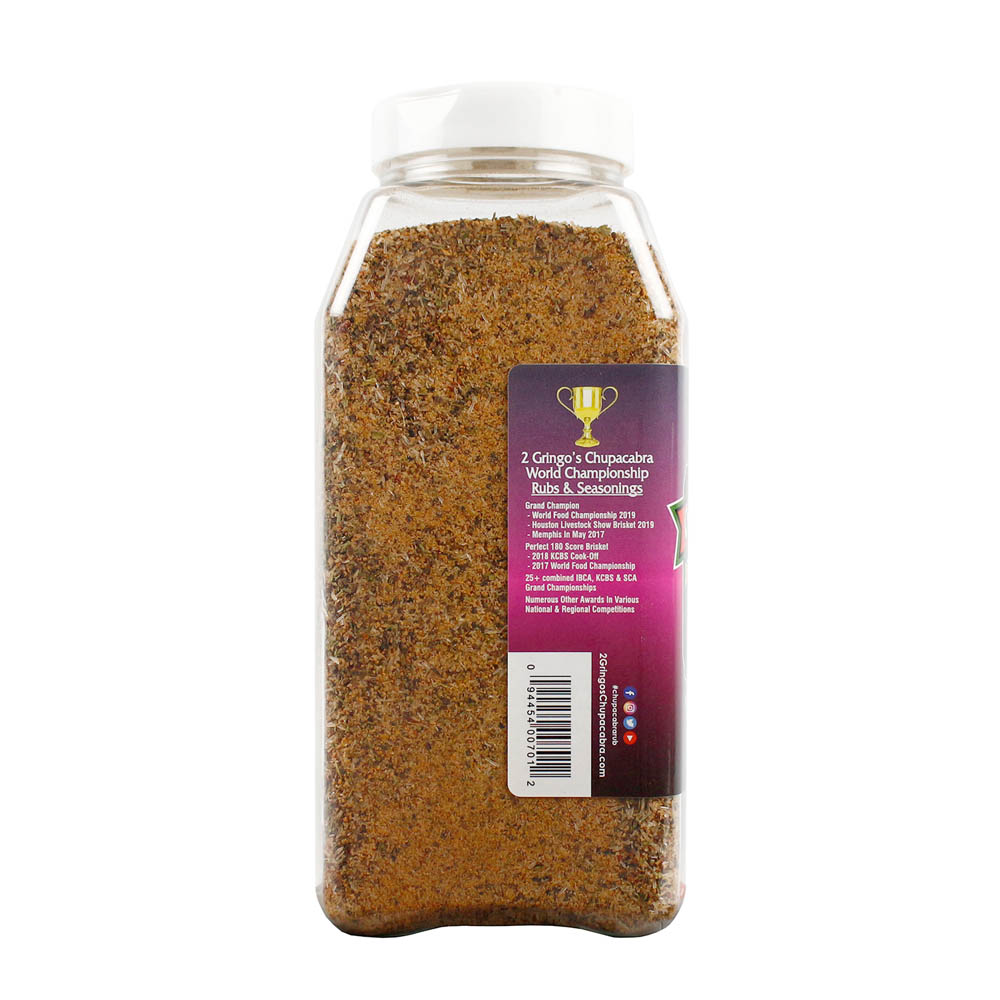 Check out this award-winning 2 Gringos Chupacabra Brisket Magic season all. Don't limit yourself to only brisket, it works magic on a variety of meats and vegetables. The magical blend consists of herbs and spices with a hint of brown sugar. Please see below for more features & specifications.