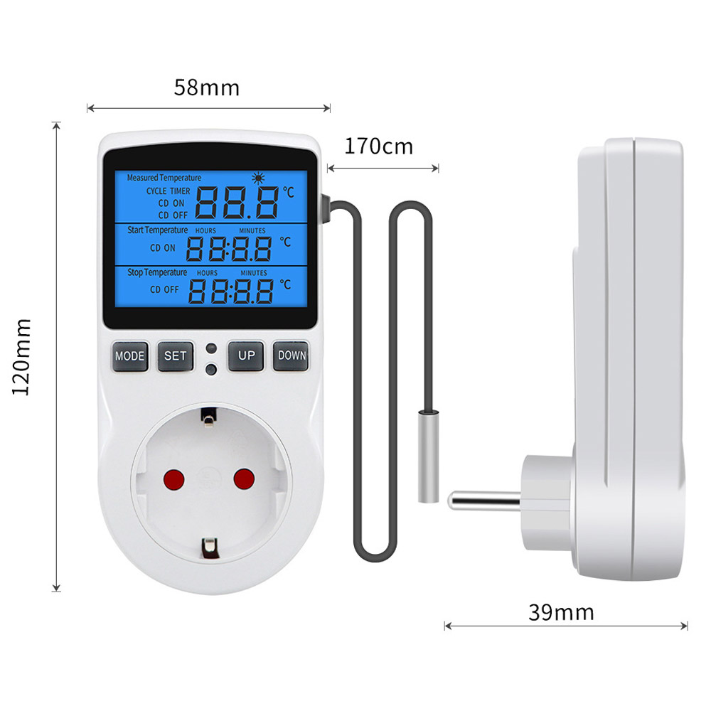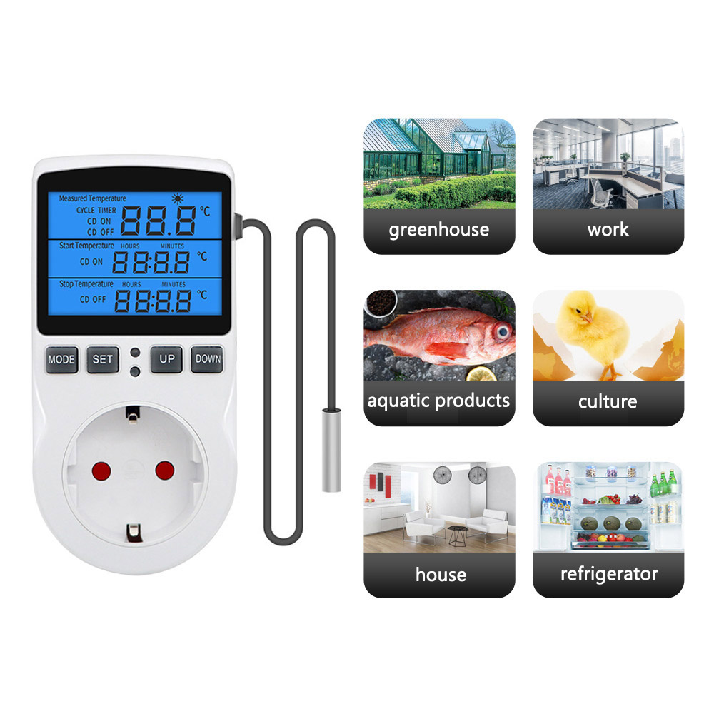 Wide range of applications: This thermostat socket with probe is widely used in glass rooms, greenhouses, incubators, glass feeding boxes, refrigerators, fermentation, heating pads and other temperature control systems.