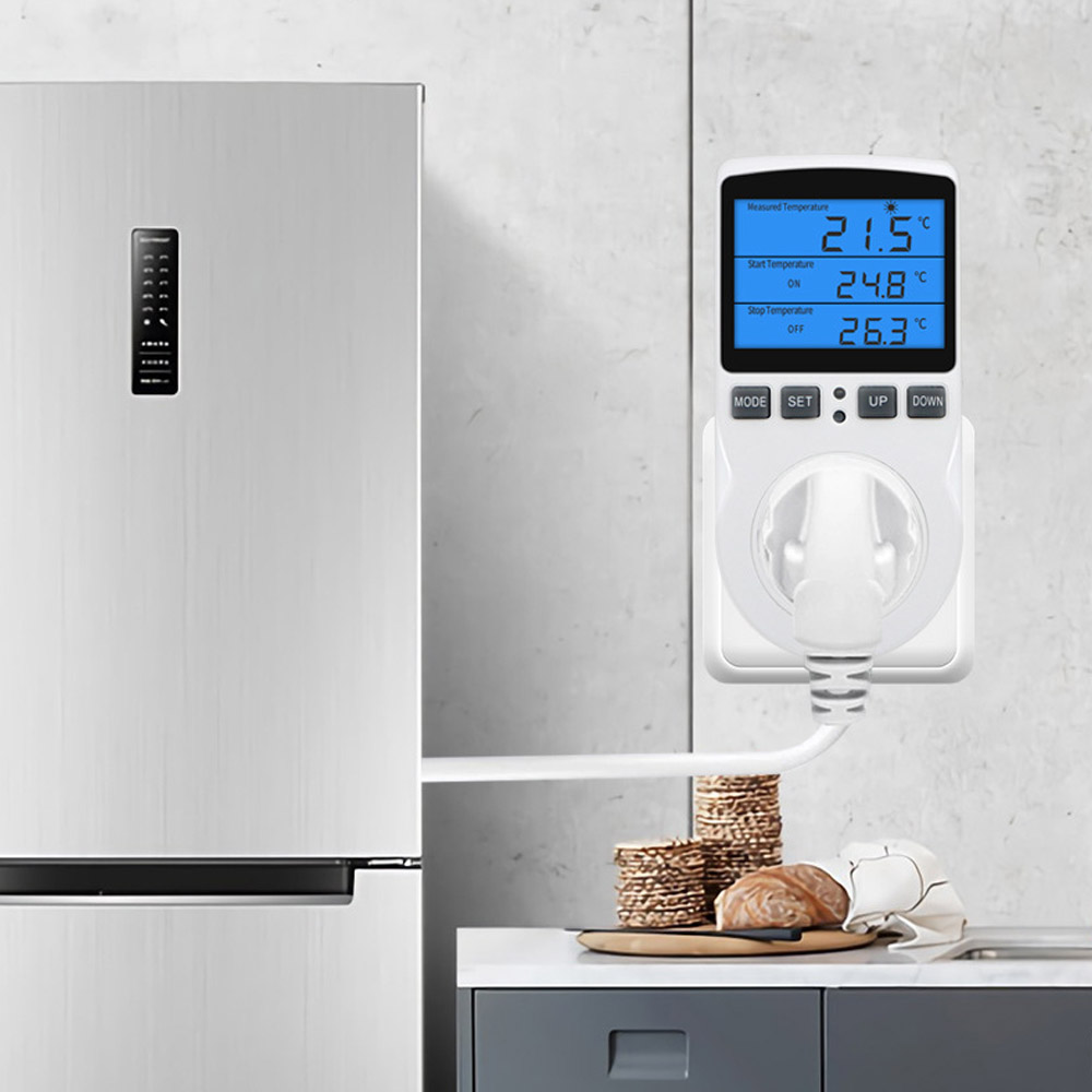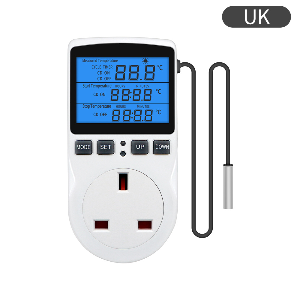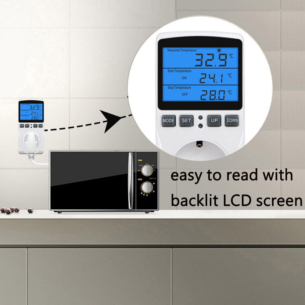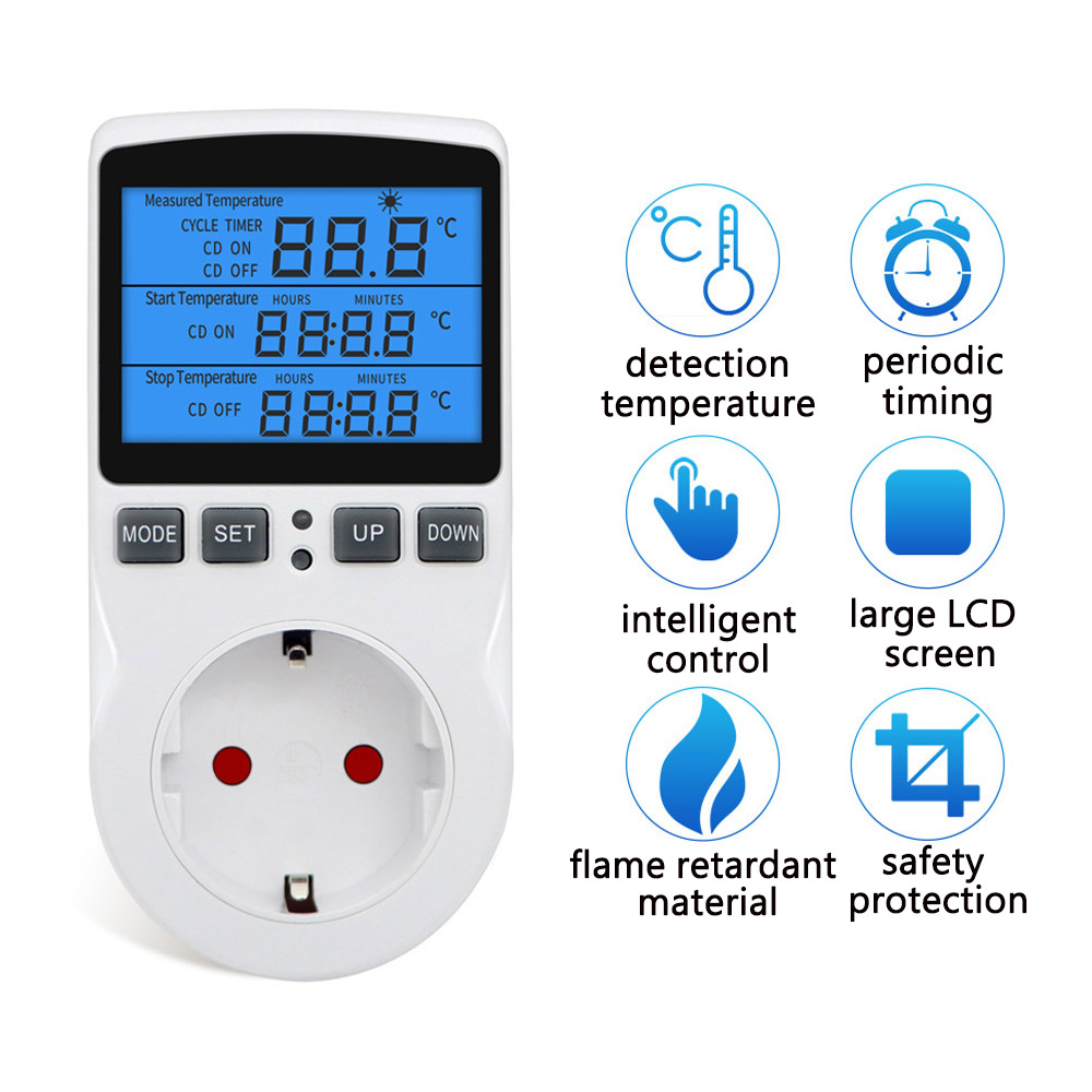 US/EU/UK/AU/FR 3680W Thermostat Temperature Controller LCD Backlit Digital Thermostat Heating Cooling Control Mode Plug in Timer
