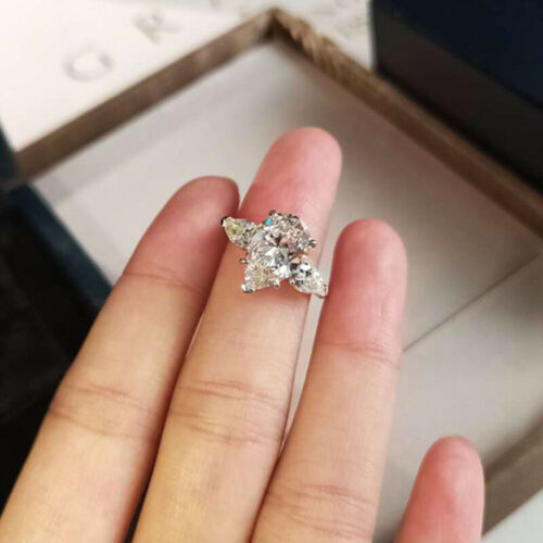 Fashion Silver Rings Pear Cut Cubic Zirconia Jewelry Wedding Gifts Size 5-11