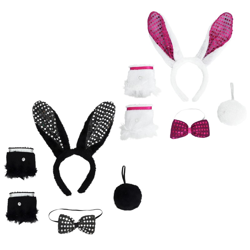 You will get 1pc headwear, 1pc bowtie, 1pc pompom ball imitating rabbit tail, and a pair of wristbands. One size fits for most.
