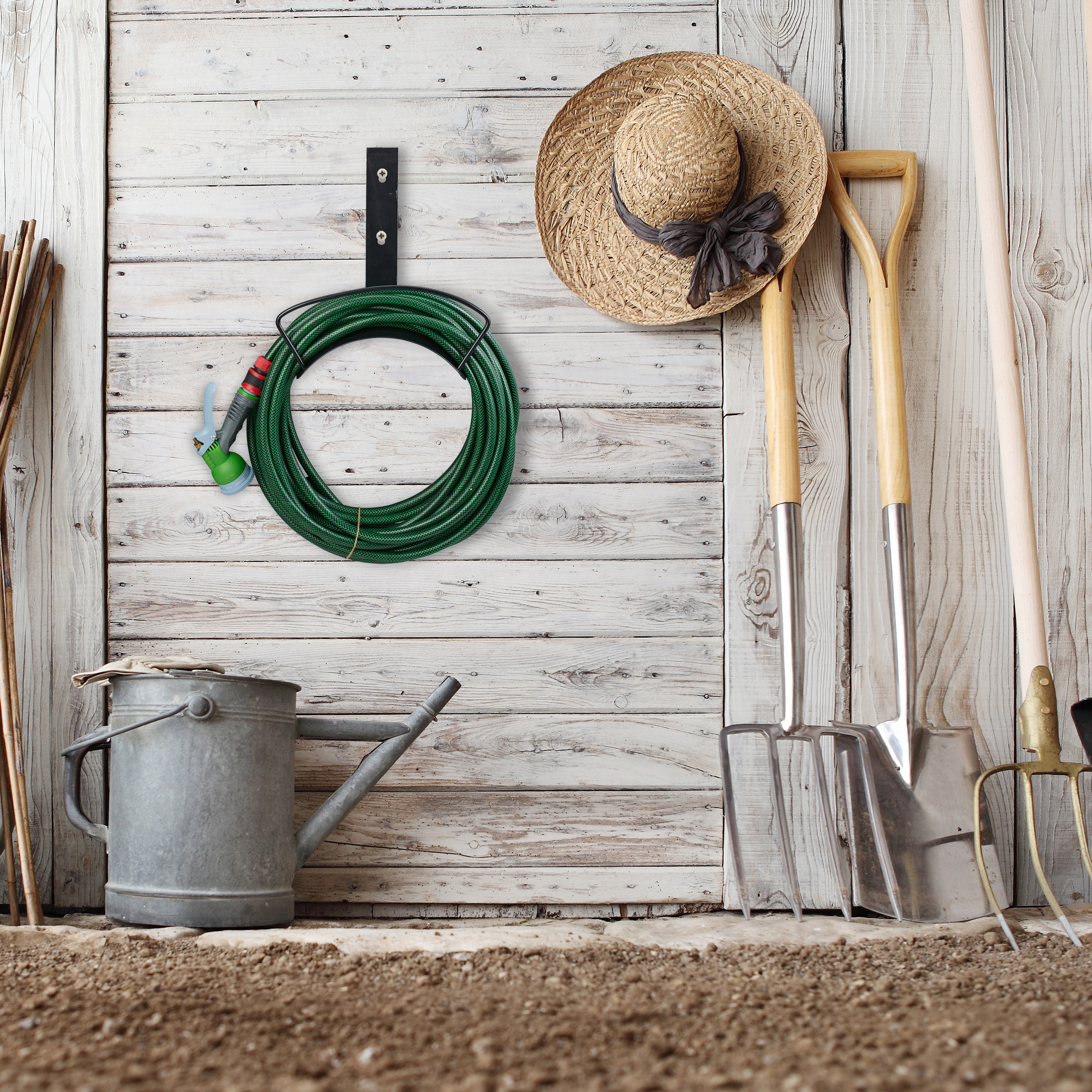 L'arrosage de vos plantes est une partie importante de l'entretien du jardin. Avec ce support pour tuyaux, vous vous assurez que le tuyau d'eau est correctement rangé. Accrochez-le sur l'enrouleur mural arrondi pour gagner de la place, puis déroulez-le à nouveau de manière pratique. Il ne se déforme donc pas et reste toujours prêt à l'emploi. Gardez votre garage, votre tonnelle ou votre cave propre et dégagé en rangeant également les câbles de vos outils de jardin électriques sur le porte-tuyau.