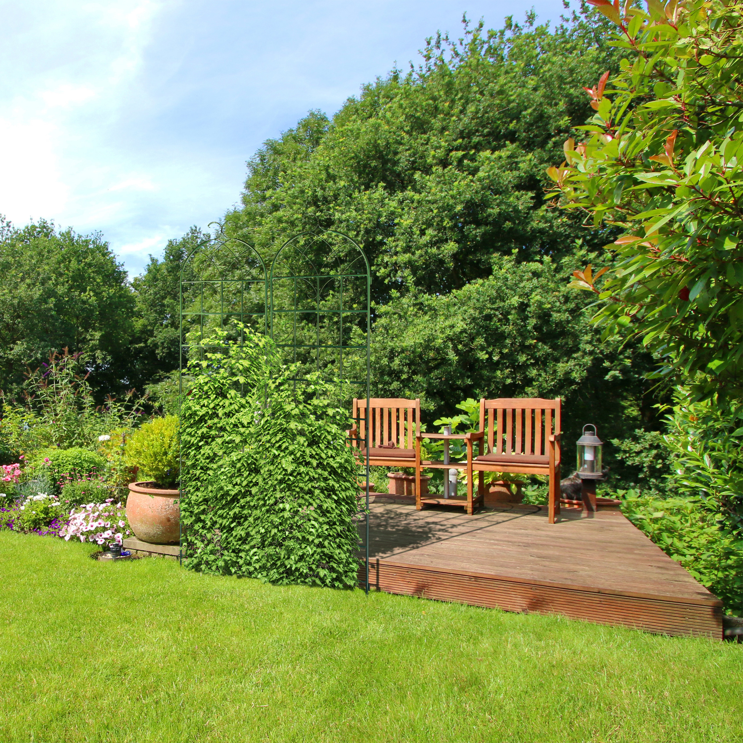 Dieses Rankgitter im 2er Set gibt nicht nur Kletterpflanzen den nötigen Halt beim Wachsen, sondern trägt mit der eleganten Form im Vintage-Look auch zu einer dekorativen Gartengestaltung bei. Rankpflanzen wie Efeu, Rosen oder Clematis werden mit dem Blumenspalier aus Metall gekonnt in Szene gesetzt. Entscheide selbst, ob Du die Elemente einzeln oder gemeinsam aufstellen möchtest. Die Pflanzengitter werden einfach in den Boden gesteckt und können über die Scharniere miteinander verbunden werden.