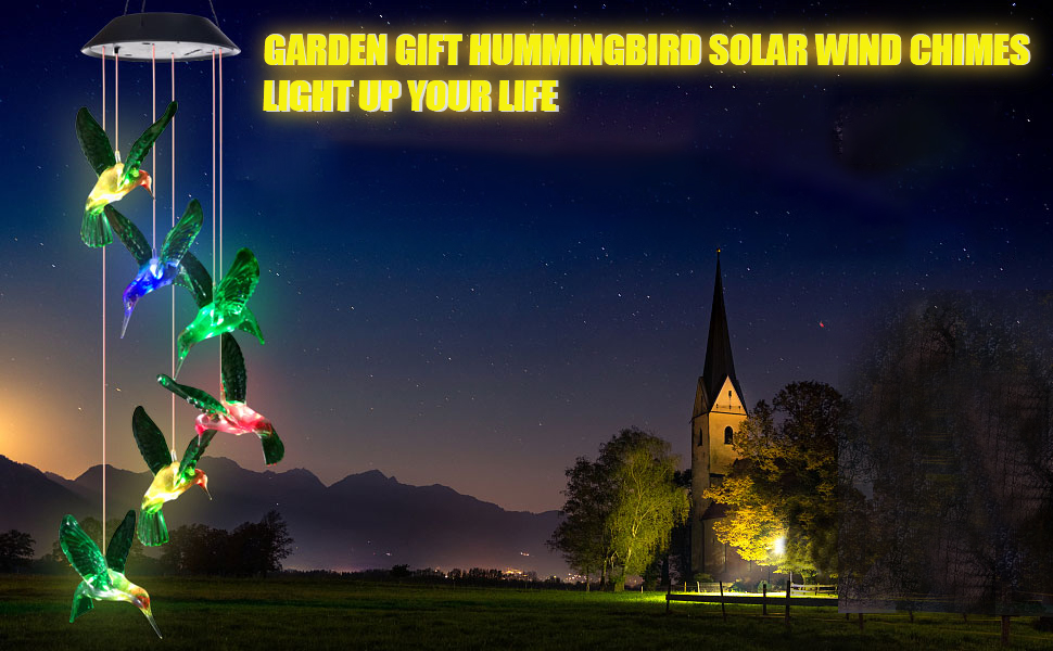 COLOR CHANGING RANDOMLY COLORFUL HUMMINGBIRD WIND CHIME LED OUTDOOR INDOOR