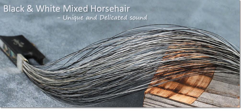 We developed the unique cello bow with black hair and white hair MIXED