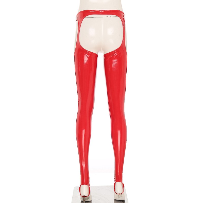 Designed with adjustable buckle waist, crotch and butt opening, thigh hollow out, skinny leggings adopts stylish motorcycle chaps design.