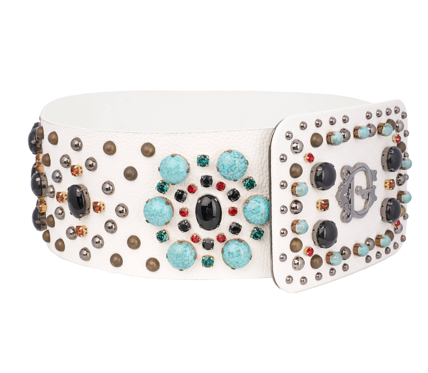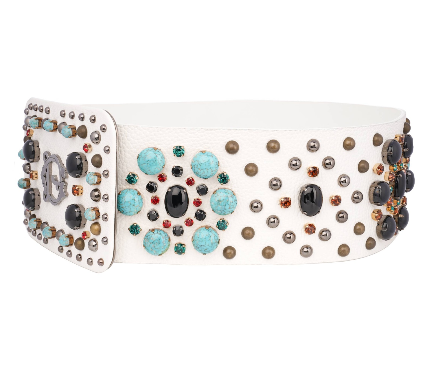 - Calf leather big belt with DG Logo, crystals and pearls elements in white and silver by DOLCE & GABBANA