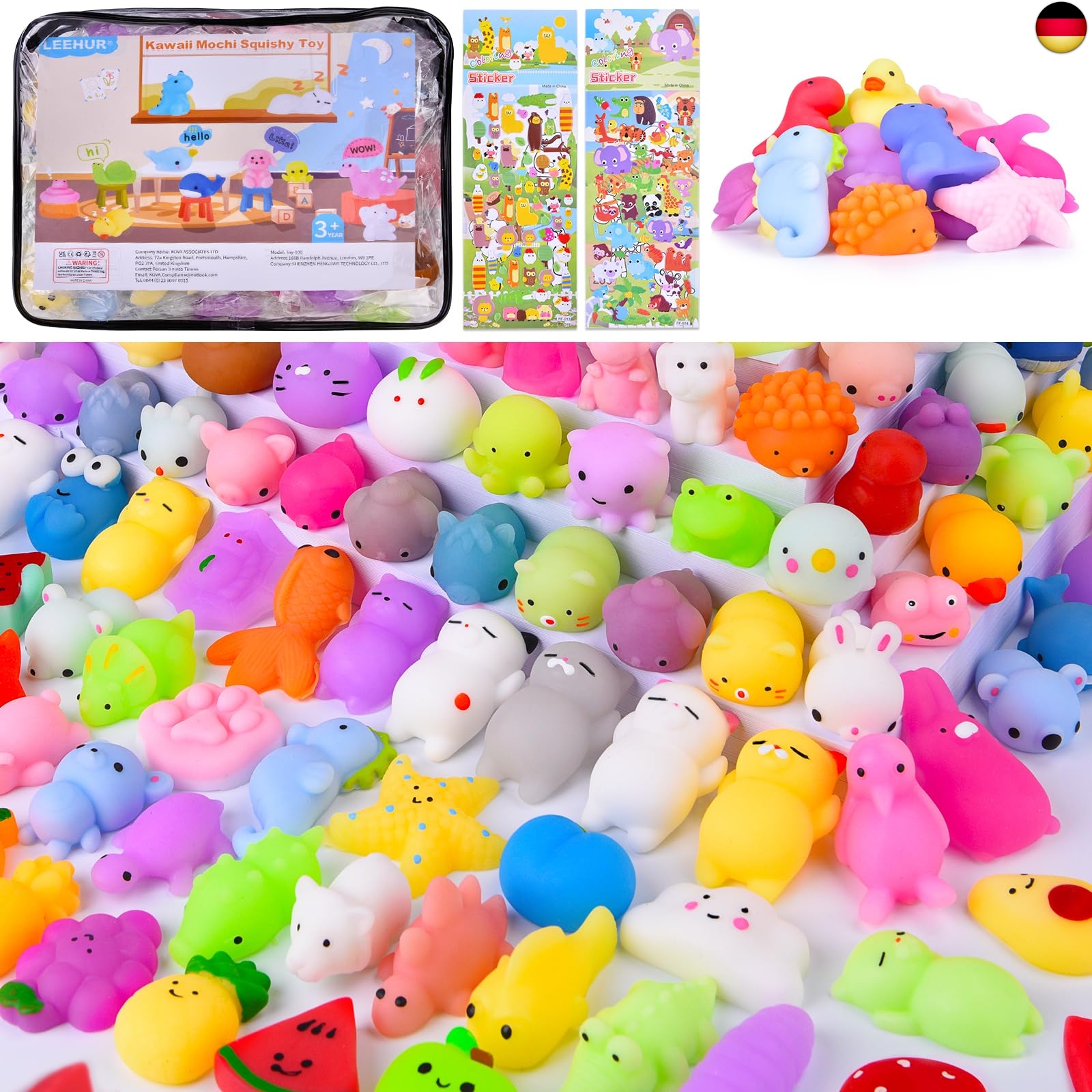 Spezifikation: Squishy-Länge: ca. 2–6 cm (0,7–2,36 Zoll) Material: Aus elastischem Silikon (TPR) Menge: 100 (zufälliger Stil und Farbe) Mini-Squishy mit großem Nutzen Lebendiges und niedliches Squishy kann Kindern helfen, Tiere und Farben besser zu verstehen und ihre Gehirnentwicklung zu fördern. Genießen Sie Ihre lustige Spielzeit mit Familie oder Freunden. Spielzeug mit Gummizug Sie können nicht aufhören, sie wegen des taktilen Gefühls und der Fähigkeit zu komprimieren, zu kneifen. Aber bitte nicht zu stark reiben und dehnen, das tut dir weh. Leicht zu reinigen Wenn die weiche Silikonblase schmutzig wird, können Sie sie in Emulsion reinigen. Sie kann nach dem Trocknen etwas klebrig sein. Bitte streuen Sie Babypuder oder Mineralpuder, damit sie sich viel besser anfühlt und nicht leicht schmutzig wird. Süße Tiere als Dekoration Es kann Ihren Tisch, Ihr Auto, Ihren Computer oder jeden anderen Ort schmücken. Wenn man diese süßen Tierchen beim Arbeiten anschaut, ist die Stimmung sehr gut. Spielzeug zum Stressabbau für Erwachsene Manchmal fühlen wir uns einsam, wütend und traurig usw., aber das Drücken dieses langsam aufsteigenden Squishy kann Ihre Anspannung und Ihren Stress lindern. Einfach zu tragen Mini-Squishies mit leuchtenden Farben und lebendigem Aussehen entwickeln die Farbwahrnehmung von Kindern. Es hat eine sehr kleine Größe, die Sie überall hin mitnehmen können, bei der Arbeit, in der Schule oder auf Reisen. HINWEIS - Bitte von Kindern unter 3 Jahren fernhalten, vermeiden, dass Kinder diese als Nahrung verzehren, am besten unter Aufsicht von Erwachsenen spielen. - Diese matschigen Tiere haben einen leichten Geruch (ungiftig), aber der Geruch nimmt ab, nachdem sie eine Weile an einem belüfteten Ort aufbewahrt wurden. - Leichte Fehler aufgrund manueller Messung zulassen.【HOCHWERTIGES MATERIAL】- Hergestellt aus umweltfreundlichem, elastischem Silikon(TPR). Die Materialien sind umweltfreundlich und sicher für die Gesundheit Ihrer Kinder und weich, ungiftig. Erfüllen CE,EN71 Sicherheitsstandards. Diese weichen Tiere haben einen gewissen Geruch, aber der Geruch wird abnehmen, nachdem es irgendwo für eine Weile setzen. HINWEIS: nicht essen und nach dem Spielen die Hände waschen.
