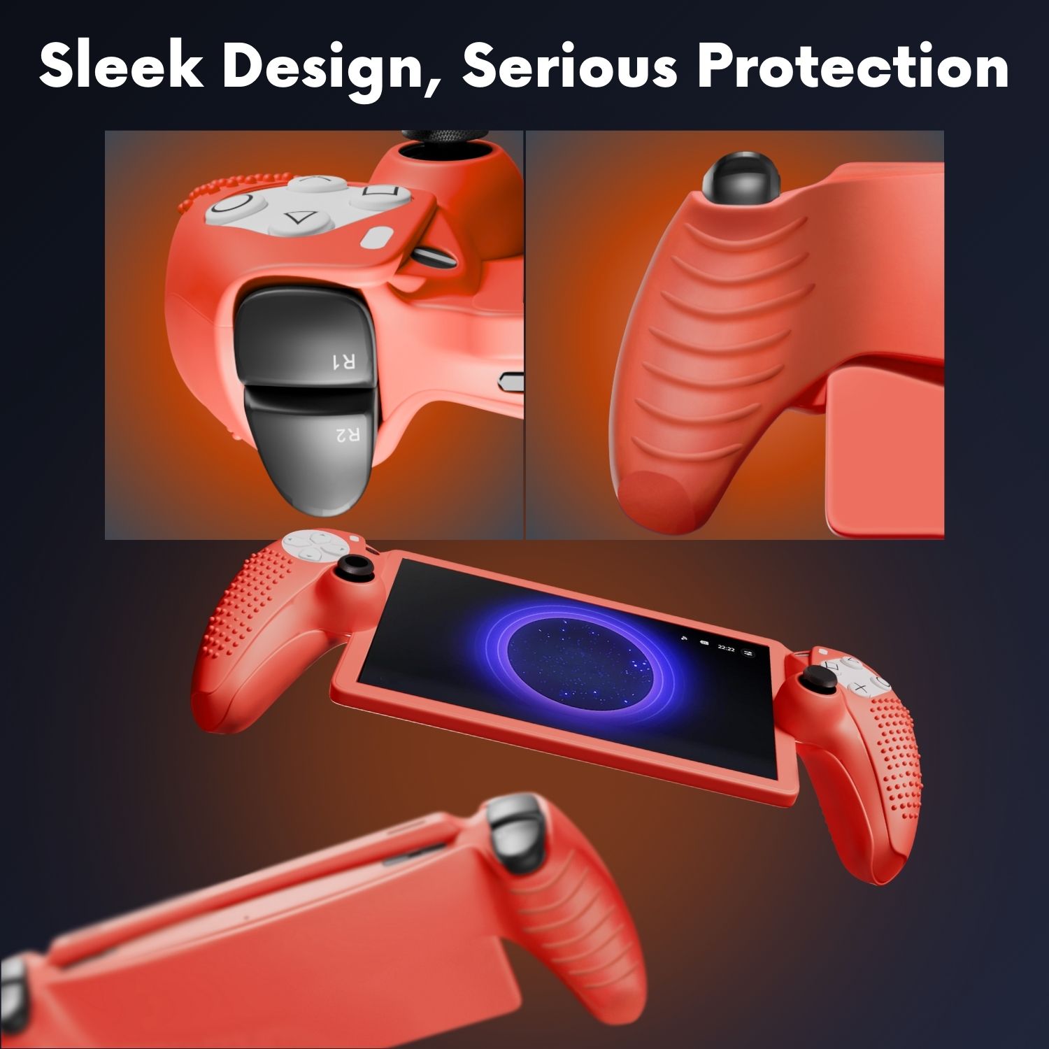 Enhance your gaming experience with our custom-fit silicone protective case for PS Portal Remote Player, designed for seamless functionality without hindering button access or signal connectivity. This case cover for PS5 Portal is crafted from high-quality silicone; this case offers exceptional shock absorption, anti-fingerprint, and scratch resistance to keep your device pristine. Its ergonomic, anti-slip, sweat-resistant design enhances grip and reduces fatigue during extended play, ensuring comfort through long gaming sessions. Installation is effortless. Slide your device into the secure, snug case fit with no tools required. With its sleek, elegant red design, this case protector for Playstation Portal not only protects but also maintains the stylish appearance of your device, making it an essential protective accessory for any gamerFeature: