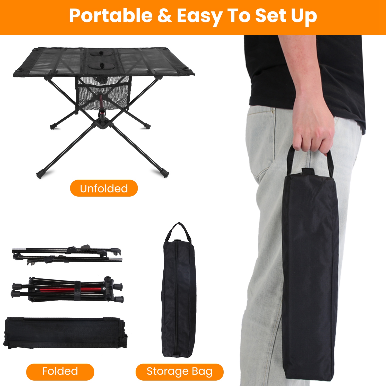 - Foldable Design With Storage Bag:Foldable design makes the table easy to fold up to a compact size and store in the storage bag for easy carrying anywhere,fitting easily into cars,RVs or wherever you may need it,not occupying any place.