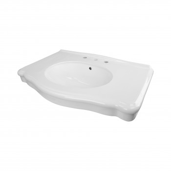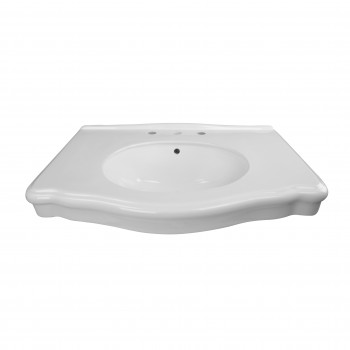 - Comes with a spacious countertop, protective backsplash rim, standard sink drain hole, 8” widespread faucet holes and overflow hole.
