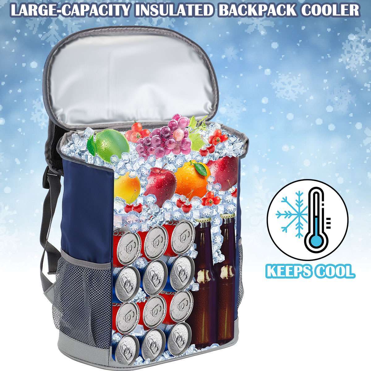 · Large-Capacity Insulated Backpack Cooler: This insulated cooler backpack offers a great cold retention to keep your drinks and food cold. It is of a large capacity and fits up to 20 cans of colas, great for hiking, camping, picnic, beach activities and so on outdoor activities to keep your items chilled.