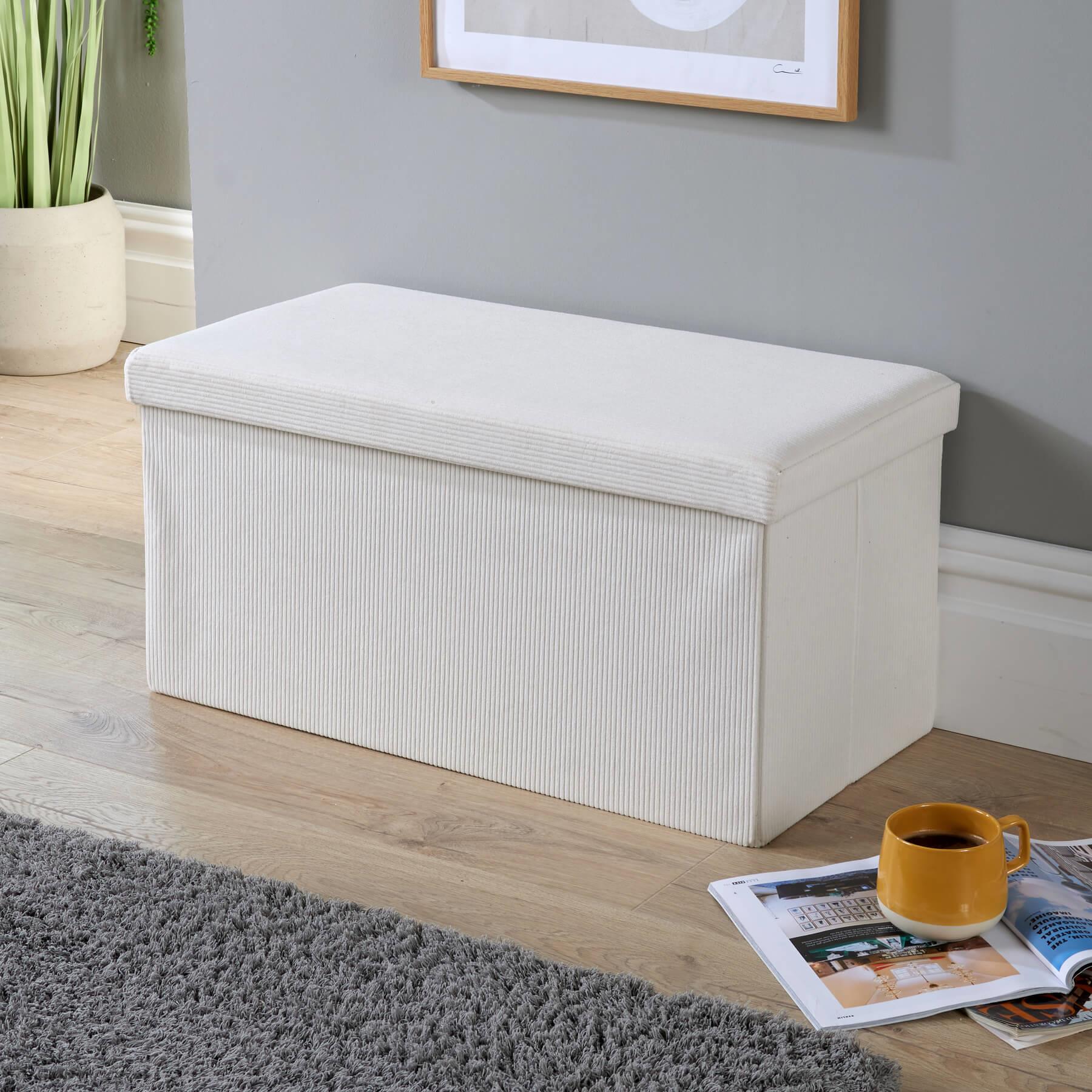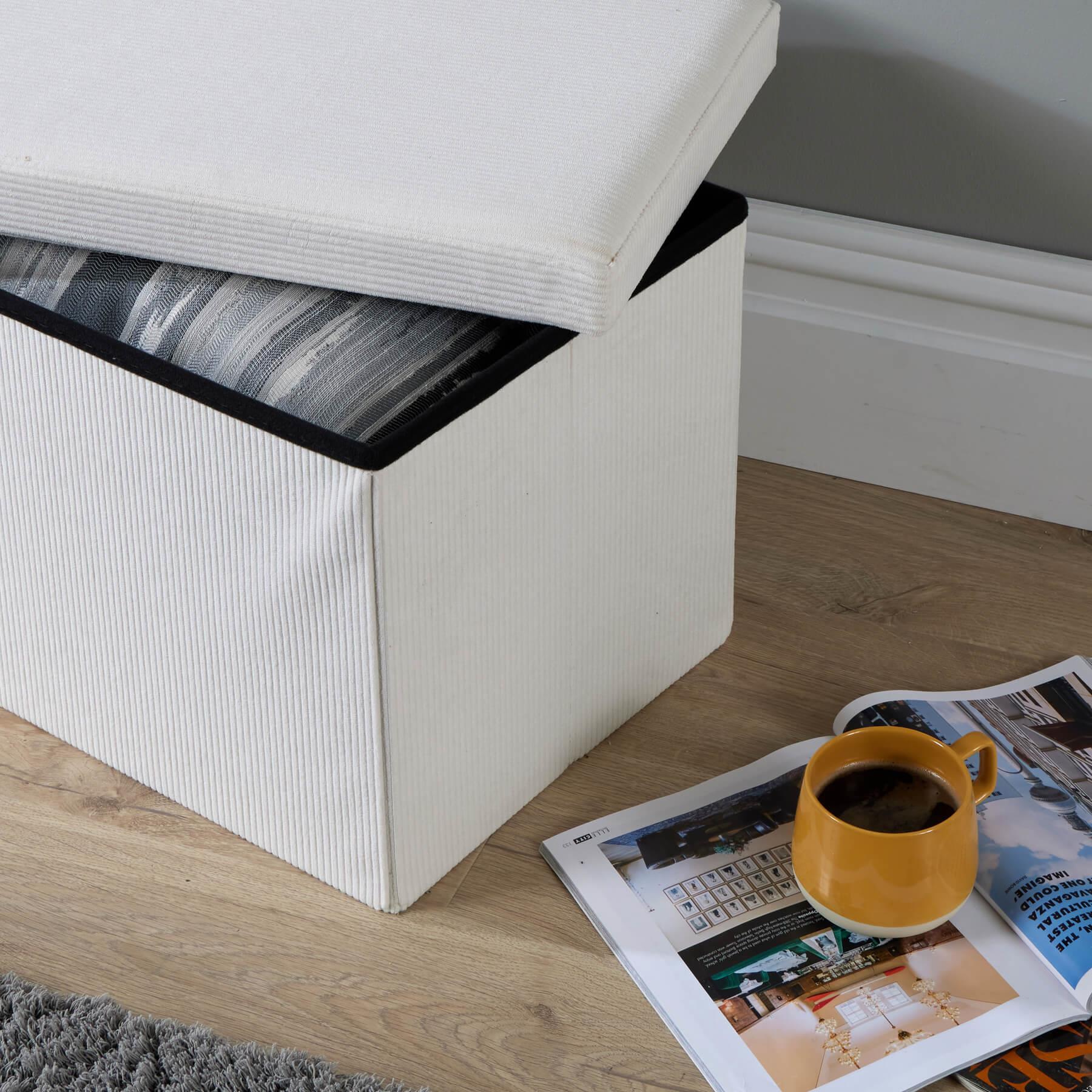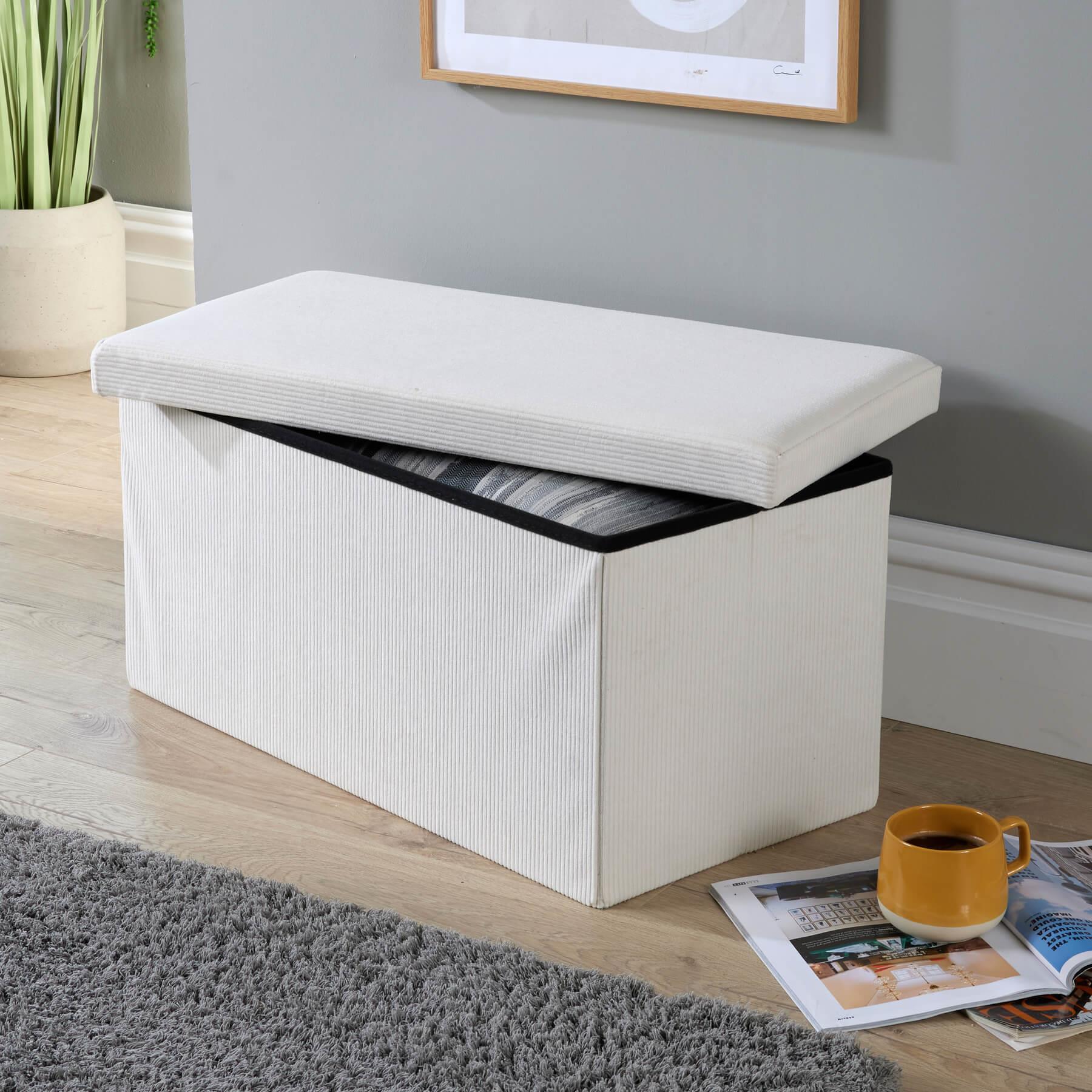 Storage Ottoman Cream Corduroy Fabric Large Folding Solid Space Saving Furniture