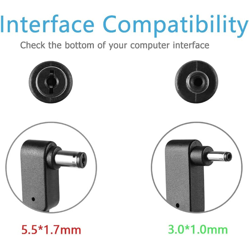 65W/45W/40W 3.0*1.1mm Small Tip Output:19V 3.42A 65W (Compatible with 19V 2.37A/2.15A 45W/40W) Input:100-240V