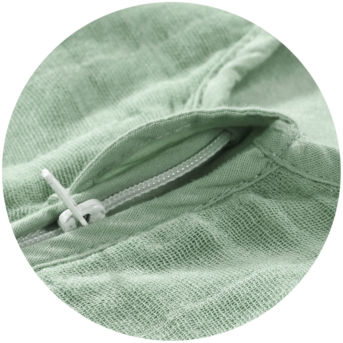 Der Mullschlafsack ist außen aus Baumwoll-Mull und besteht innen aus weichem Baumwollfutter. Ideal für eine Raumtemperatur ab 21°C.