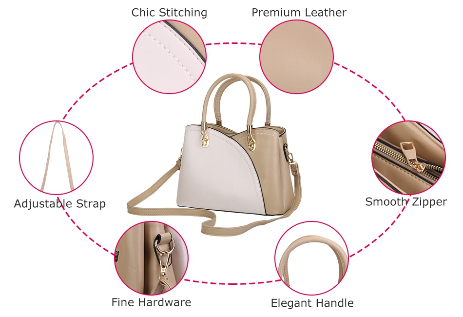 PU Leather Product Detail Image Gallery Product DescriptionOverview:This top-handle bag is a perfect choice for women who needs a bag that can be used as a handbag, a shoulder bag and a crossbody bag, easily matched with your everyday wearing. This tote handbag is fashionable and long lasting use with PU leather, but not heavy. Moreover, it is well-constructed with several roomy compartments for your essentials. It is worth being recommended to girlfriend, wife and mother as a gift. Features:- Premium PU Leather:Made of premium PU leather,smooth and soft. Our top-handle bag is lightweight and long-lasting use.