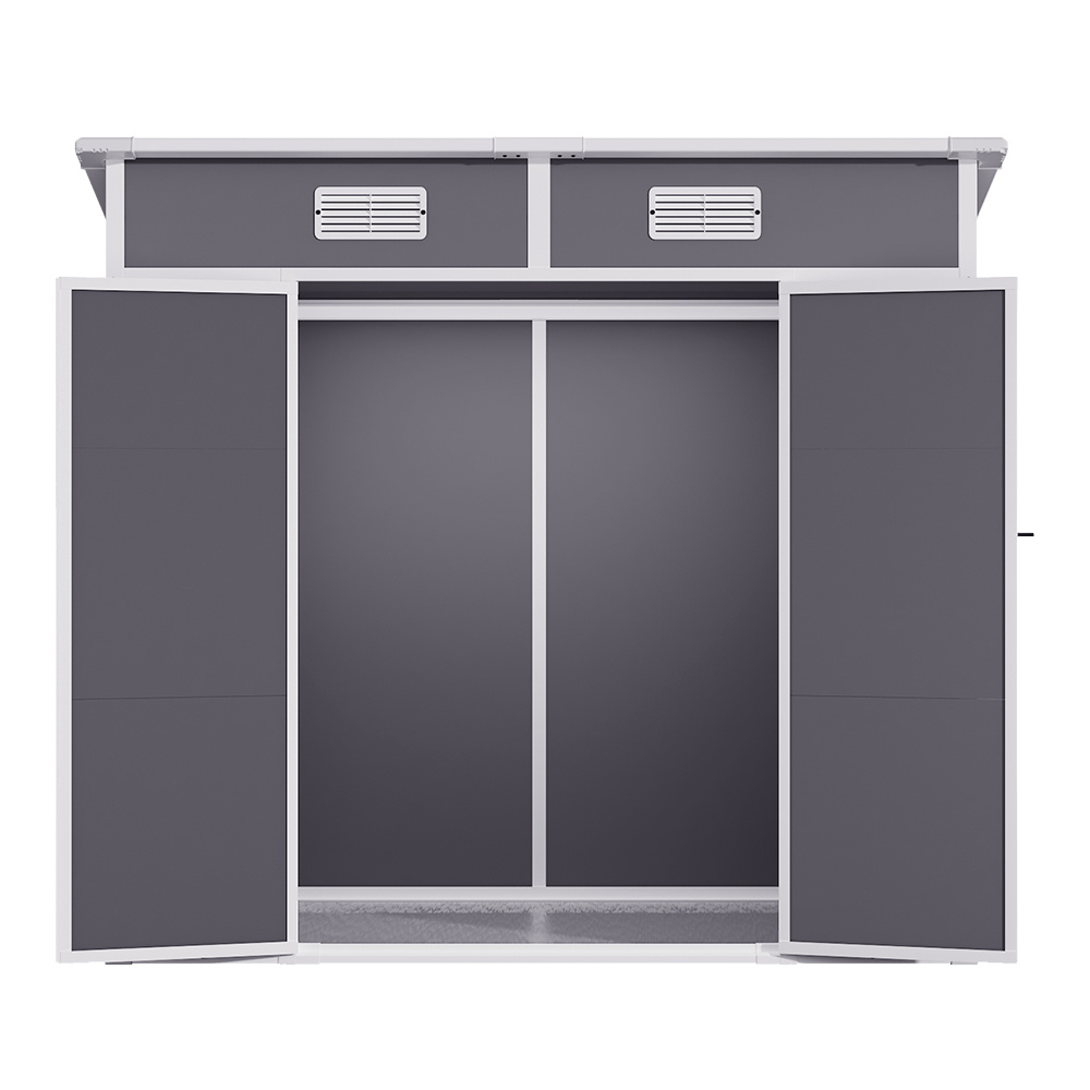 Spacious and open inner storage area allows you to store lot of garden tool,equipment,outerwear,bike,etc.