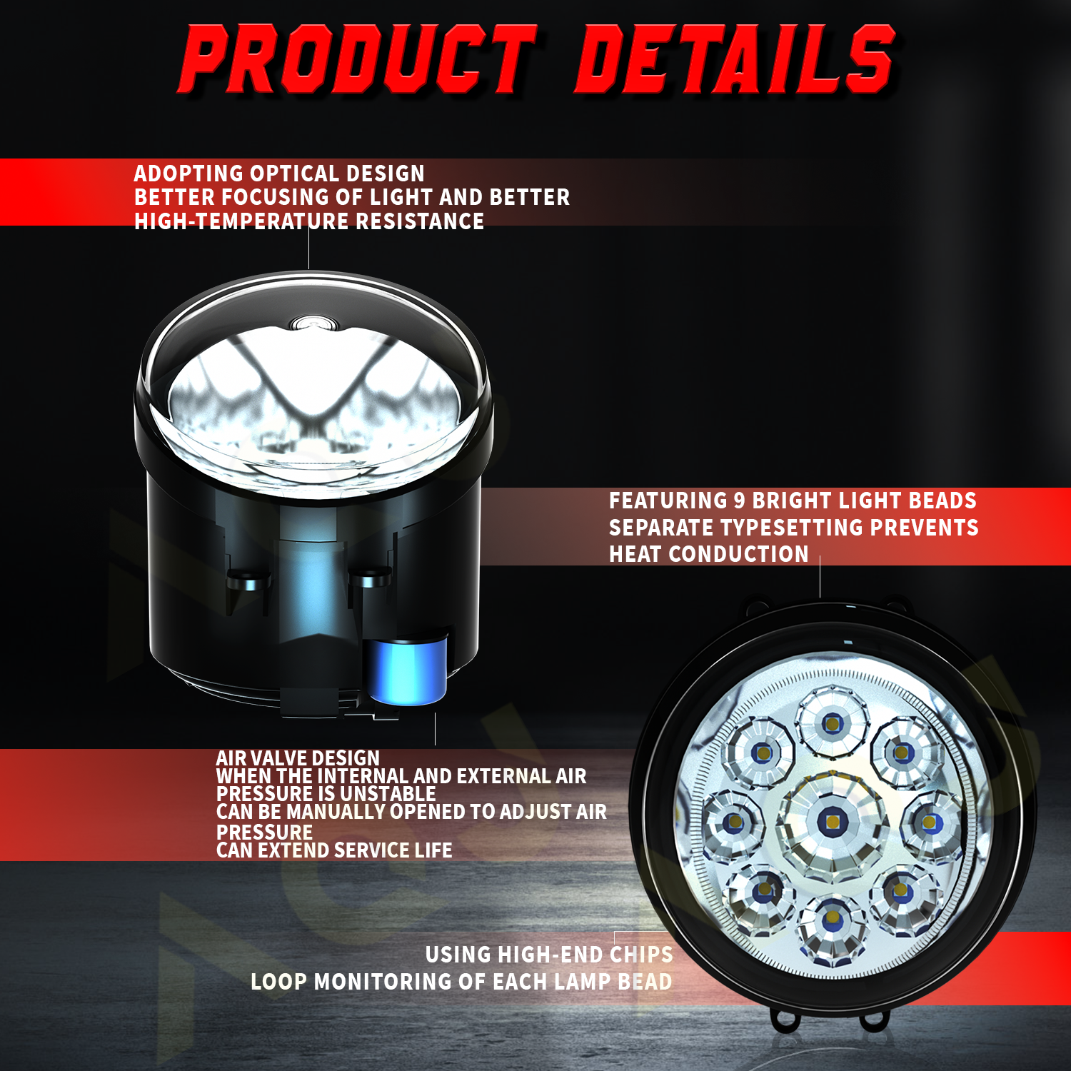 High Quality Fog Lamps made by approved manufacturers with materials that meet strict requirements.
