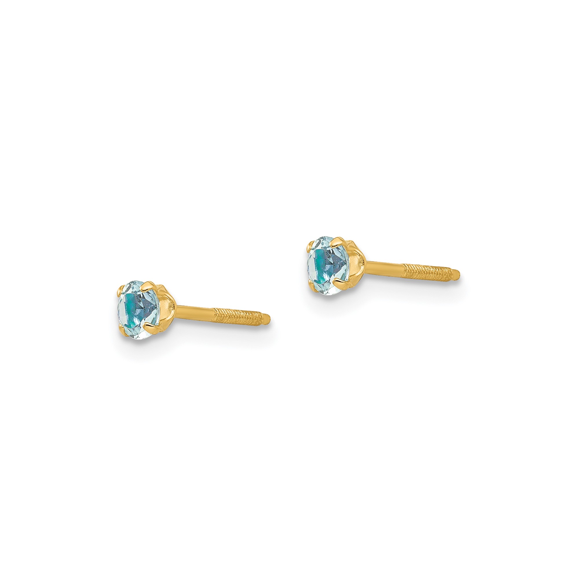 14k Yellow Gold Childrens 3mm Aquamarine Earrings