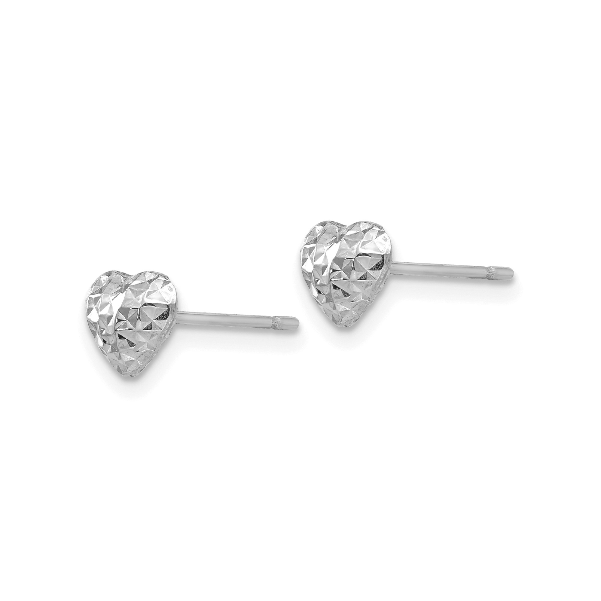14k White Gold Diamond Cut Puffed Heart Post Stud Earrings