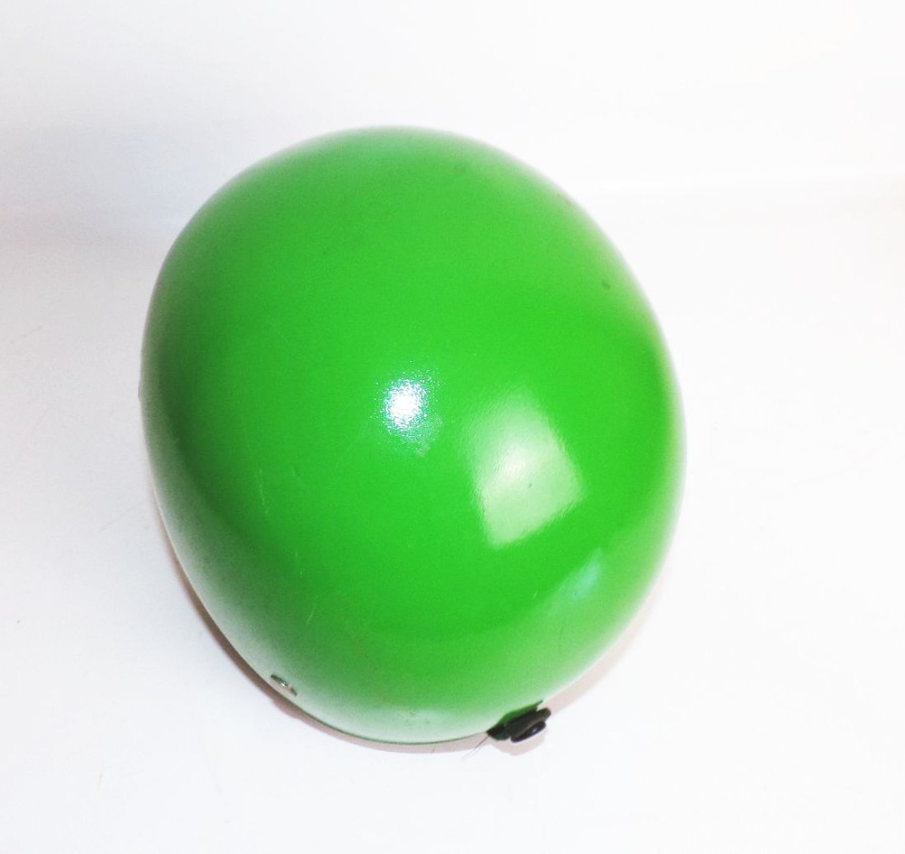 Originaler, alter Mopedhelm in grün, aus DDR - Zeiten. Größe 56. Ungereinigter Fundzustand. Das Grün ist nicht die Originalfarbe. Erhaltung: Trage - und Gebrauchsspuren sichtbar, alles weitere siehe bitte Fotos. Es wird keine Mehrwertsteuer ausgewiesen, da wir der Differenzbesteuerung nach § 25a UStG unterliegen.