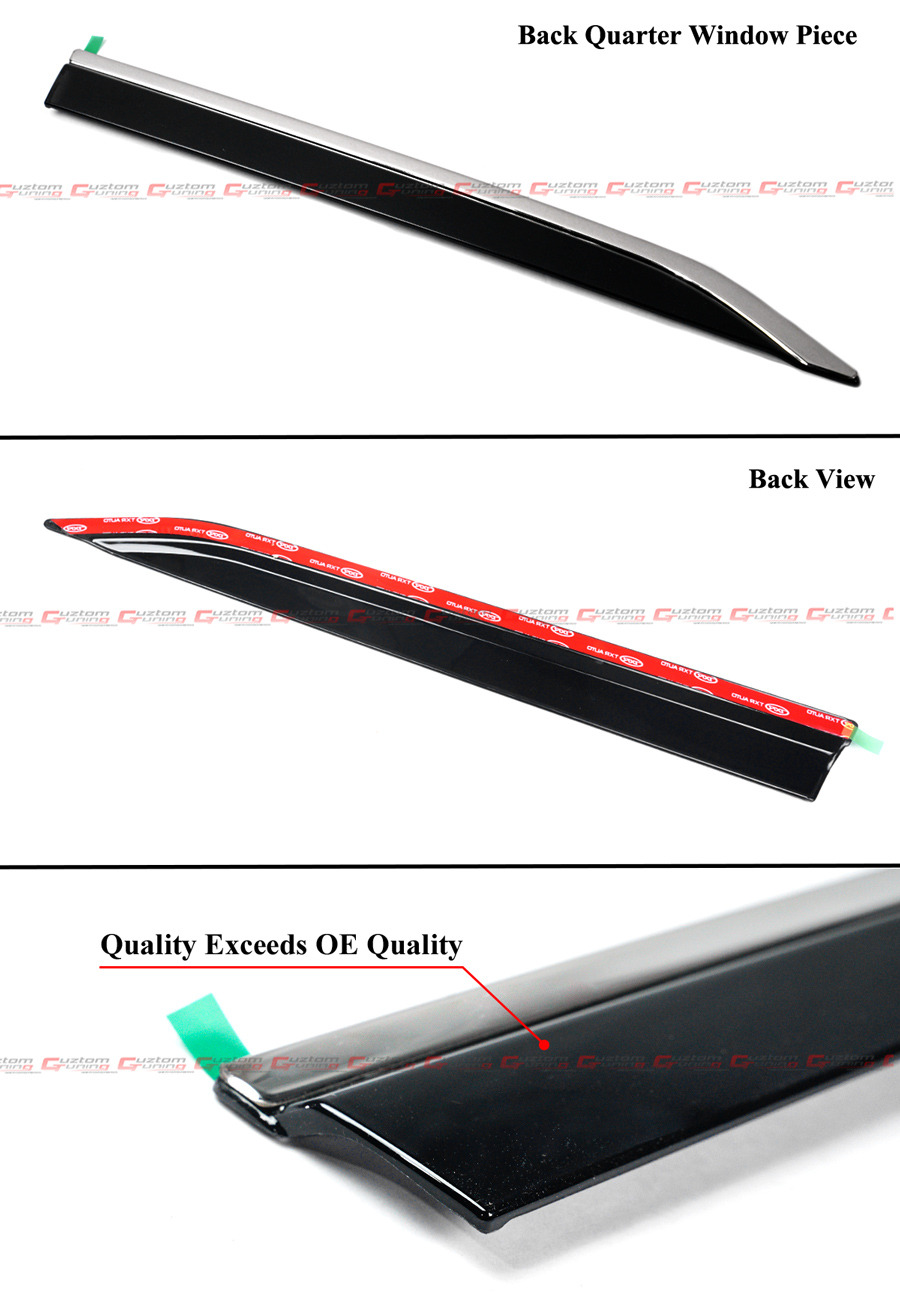 - These are Premium Material Visors. The Quality Exceeds the OE Standard. They are Make Of Top Quality Acrylic Material In Gloss Black Finish(Not See Through). Comes With Automotive-Grade Tapes For Easy Installation.