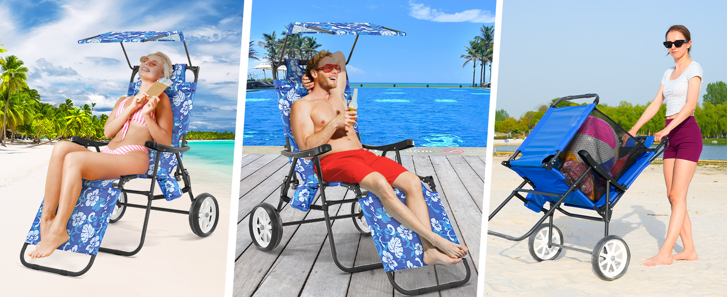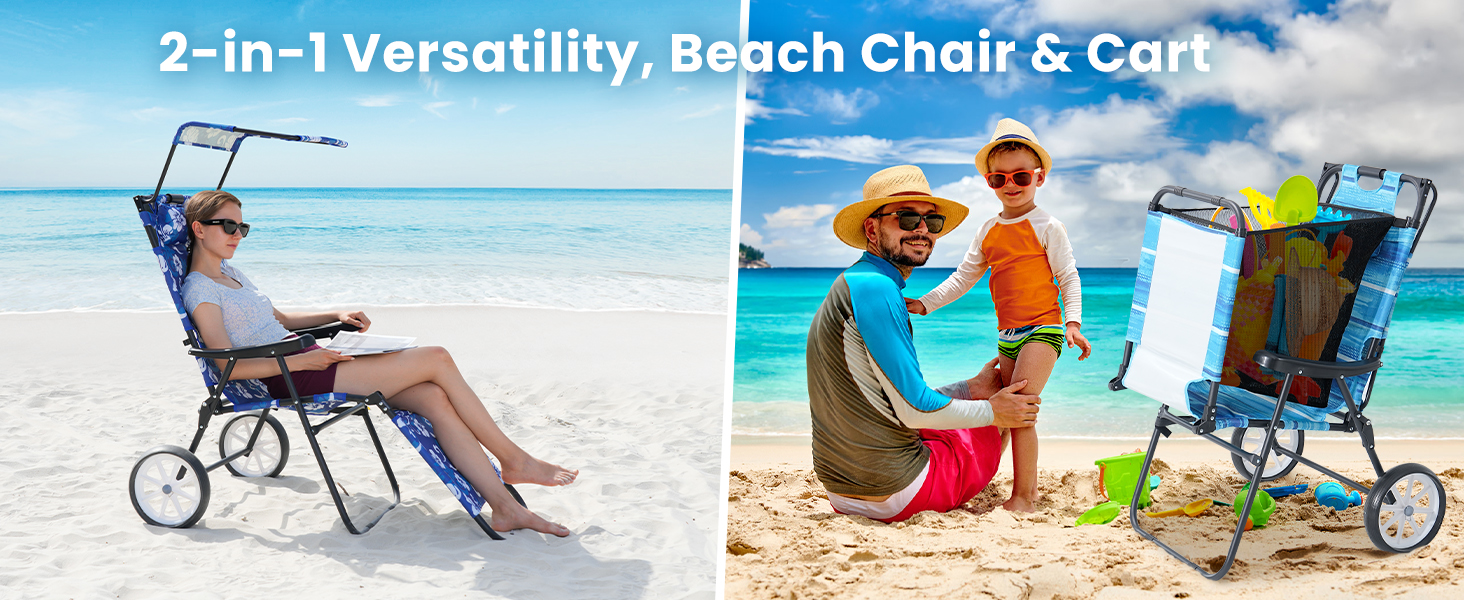 VERSATILE 2-IN-1 DESIGN - Discover the ultimate in beach comfort and convenience with our 2-in-1 Lounge Chair and Wagon. Effortlessly switch between a comfortable lounge chair and a practical beach cart, perfect for transporting all your essentials across sand or grass
