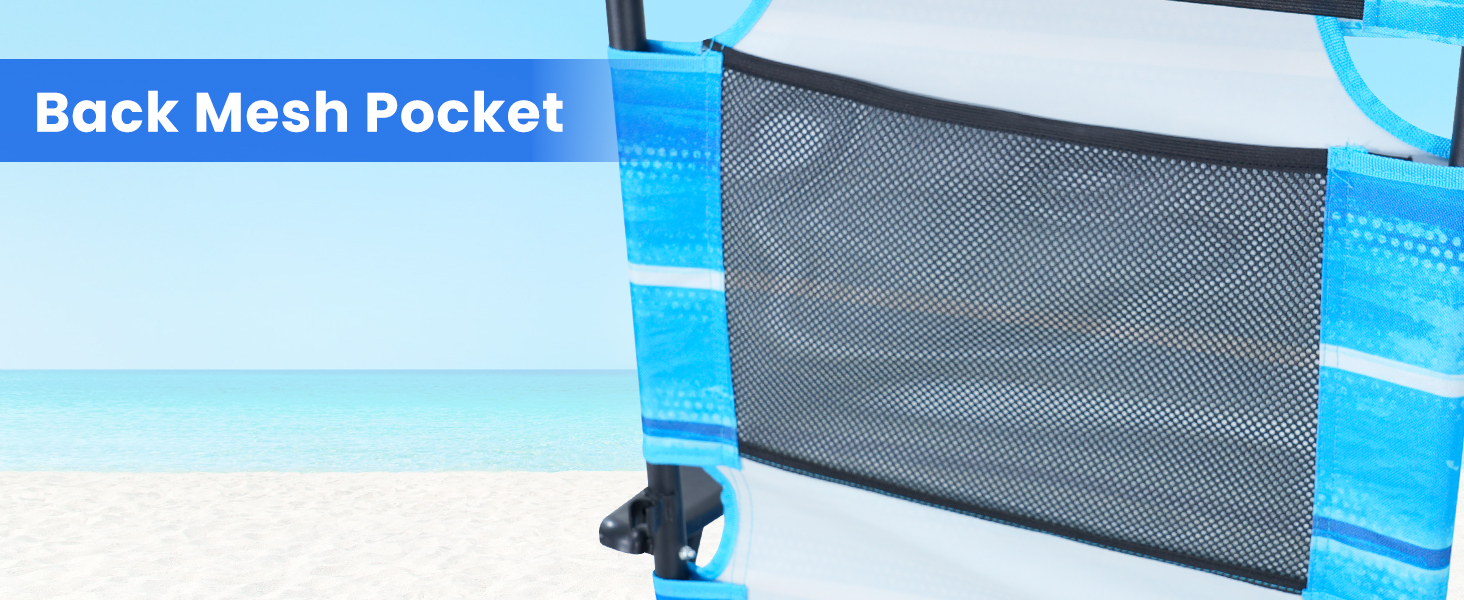 SPACIOUS STORAGE - Featuring an extra-large mesh basket, our chaise lounge outdoor securely fastens and locks all your beach essentials. Attach the mesh for hauling items, and effortlessly convert it back to a comfortable beach chair when it's time to relax