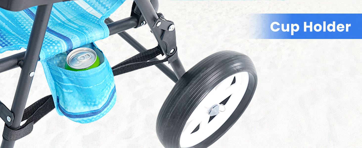 CONVENIENT ALL-TERRAIN MOBILITY - Equipped with large all-terrain wheels, our beach chair combo effortlessly navigates through sand and grass. Folded dimensions of 36" in width and 30" in height make it easy to store and transport. Open dimensions of 43.3" x 20" x 49.6" provide ample space for lounging
