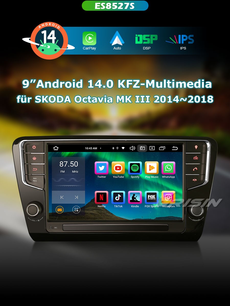 ES8527S 9" Acht-Kern Android 14.0 Auto Multimedia System CarPlay & Auto GPS TPMS/DVR/DAB+/DTV-IN...