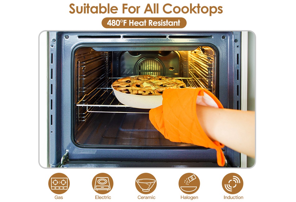 - Fast & Even Heat Induction:Energy-saving aluminum alloy bottom makes the pan to heat up more quickly,evenly,absorbs heat efficiently and penetrates the food to stimulate and release flavor of the food. Heat resistant up to 480℉,dishwasher safe,making cleaning at a breeze.
