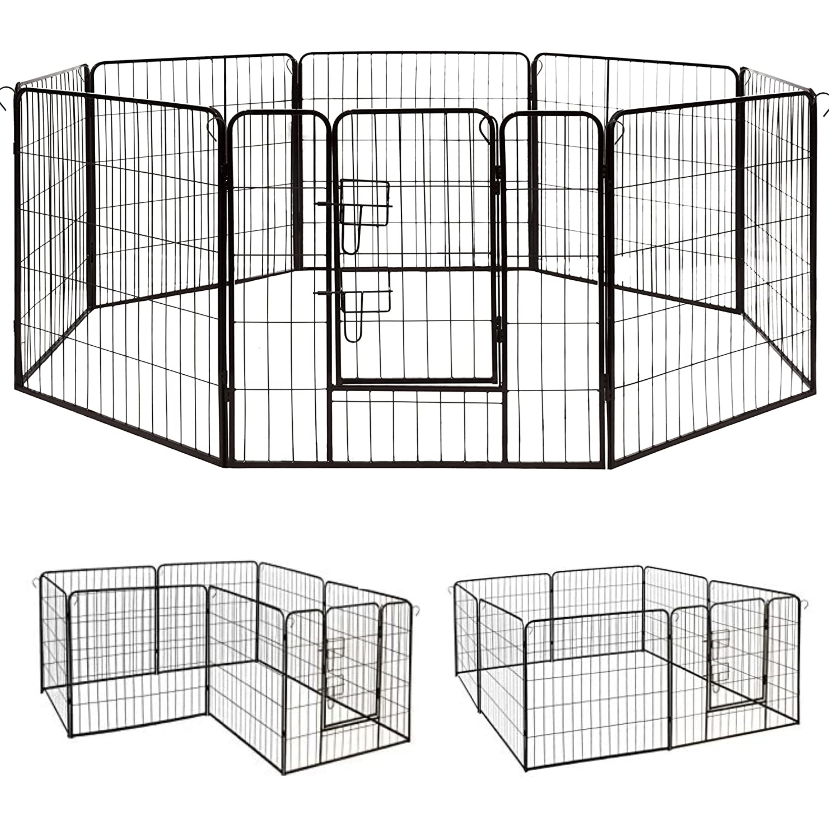 ALEKO kennel playpen keep your pet safe and sound. Our kennel is sturdy enough to keep your pet secure, while still open enough so that your beloved animal won’t feel too confined. Designed for maximum pet comfort. One kennel is a large enough playpen for the average pet, but if you need more room it’s easy to connect multiple kennels together, giving your animal more room to play. Your pet is a family member; allow yourself the peace of mind knowing they are secure in their kennel without the need for a leash. Quality construction with simple assembly instructions will set up in minutes.