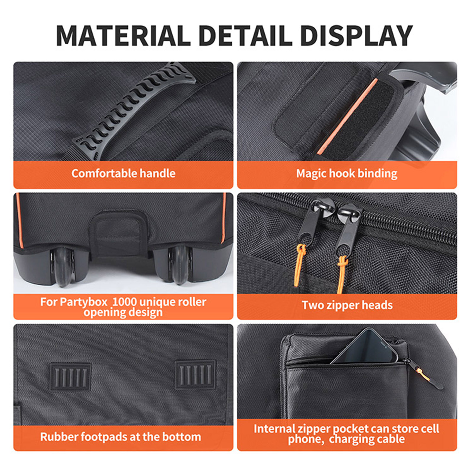 Features: l Dual Zipper: Heavy-Duty dual zipper opens entire top of bag for easy loading and unloading with large interior storage pocket for cables l Outstanding Design: With 2 strong handlebars, carry it more effortless. Rubber footpads on the bottom is durable, extend the usage of the speaker bag l Just Enjoy Your Music Journey: Put on the dust case, take your daily necessities, you can drag the speaker to go out to party, swim, picnic, etc., both excellent for carrying outdoor or storage indoor. It is a great gift for your friends and family l Speaker Tote Bag: Designed to fit for JBL PARTYBOX 1000 outdoor speaker l Superior Protection: Pack the party away, without having to worry about bumps and scratches Specification: l Applicable Model: for JBL PARTYBOX 1000 Speaker l Color: Black l Material: Nylon l Size: 38x11x35cm l Quantity: 1 PCS Package Includes: l 1x Speaker Tote Bag