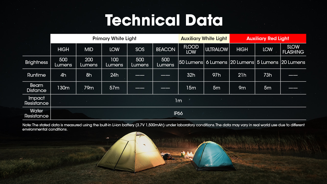The NU30 offers remarkable versatility with its three lighting outputs: Primary White Light, Reading Light, and Red Light. When using the primary white light, you can access up to three different brightness levels by short-pressing the power button, or activate the ultralow mode by double-pressing the power button. When the light is off, double-press the power button to access the reading light, providing two low-brightness modes. Alternatively, switch to the Red Light by long-pressing the mode button when the light is off. The red light protects your night vision or is used as a long-lasting signal light with three modes: Low, High, and Slow Flashing. The NU30 also features modes like SOS and Beacon to assist you in any emergency.