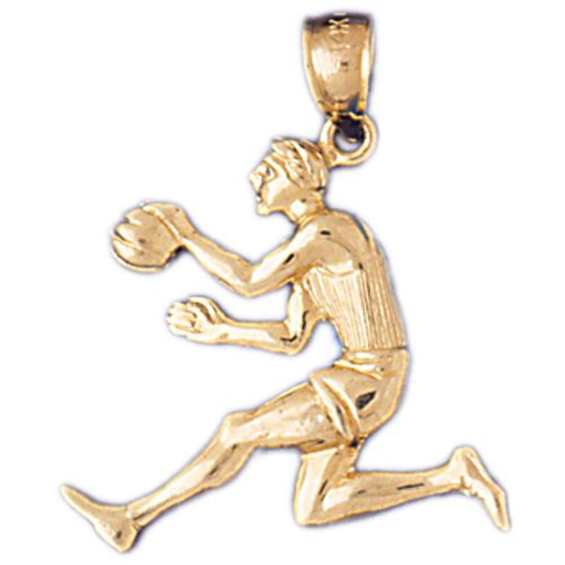 Charm Pendant made by solid 14karats Gold, which has the shape of a Basketball Player. It weights 2.4 Grams. You can choose between three different colors of gold: yellow, white and rose gold.