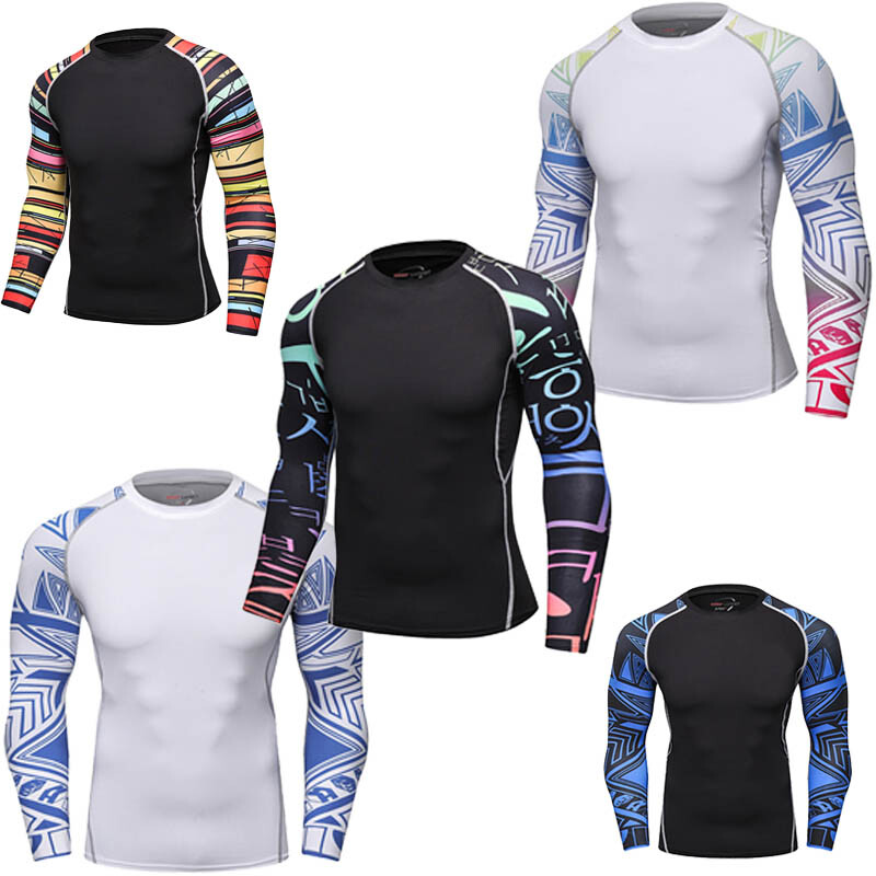 Men Shirts Rashguard Tee Compression Tops Long Sleeve Sunsuit Sports Sportwear