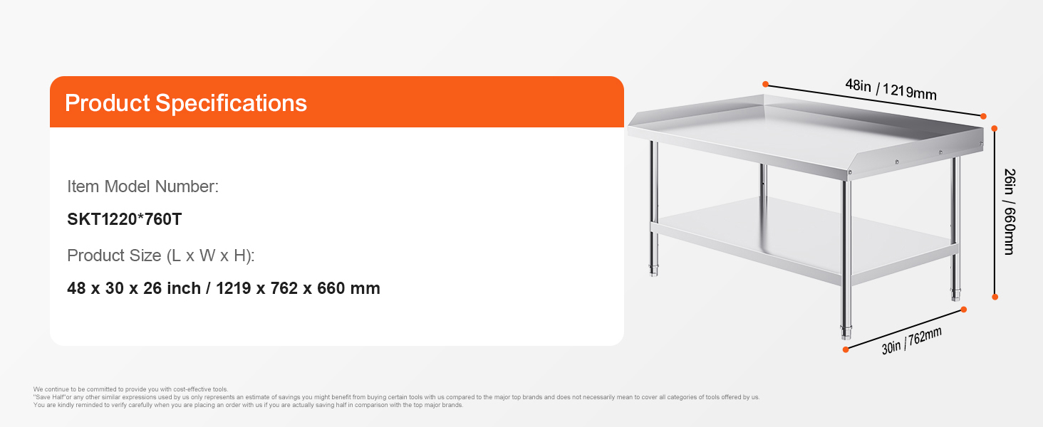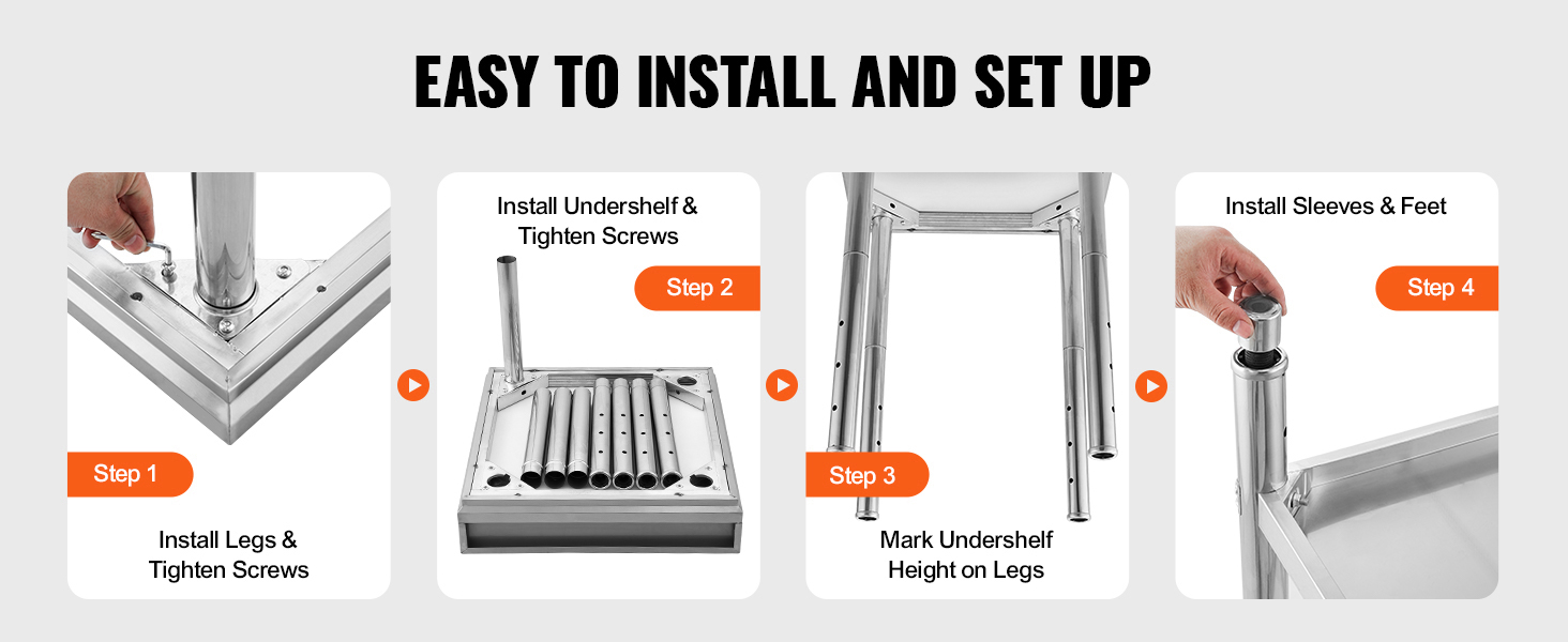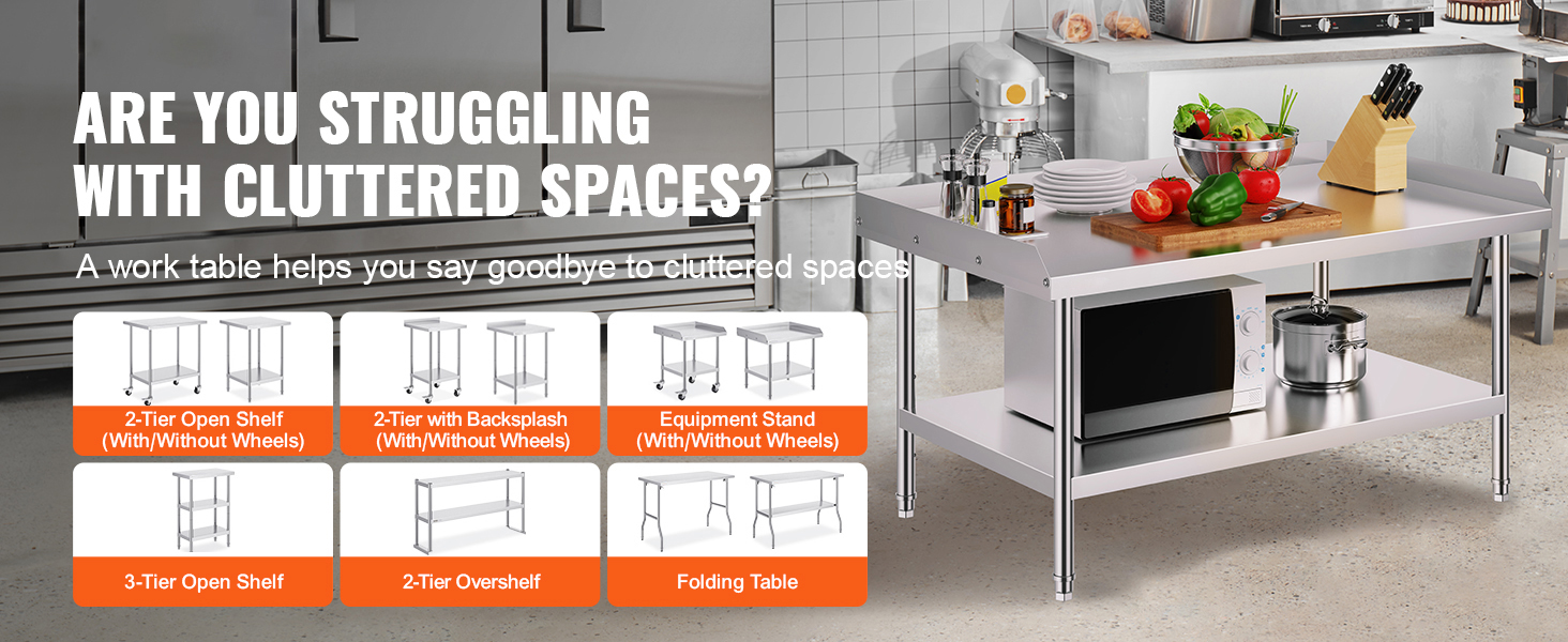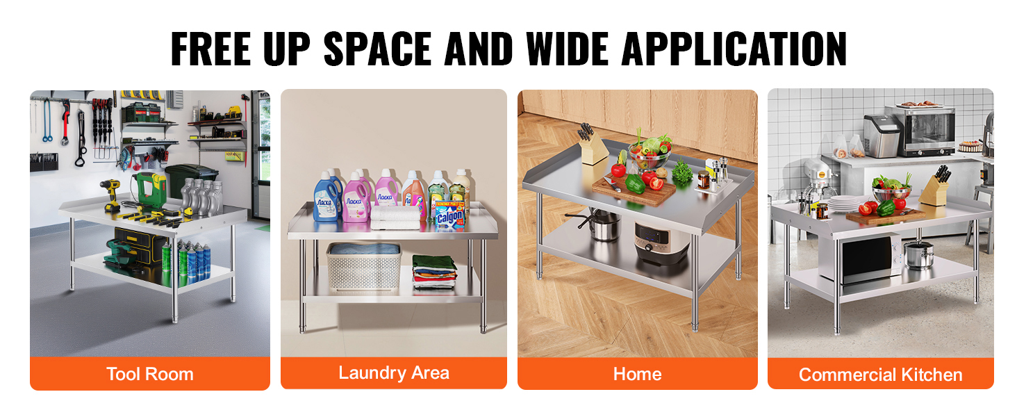 Practical Sizes: Available in various sizes to perfectly fit your kitchen needs. Whether for commercial kitchens, home renovations, or your garage setup, our professional-grade stainless steel work table series is designed for lasting performance and reliability. We recommend measuring your space before purchasing.