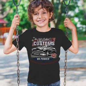Old School Custom V8 Youth T-shirt Hot Rod Greaser & Rebel Classic Car Kids