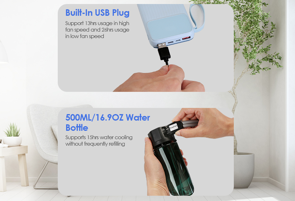 - Fan Working Time: 13Hrs on High Level; 26Hrs on Low Level (tested by 10000mAh power bank)
